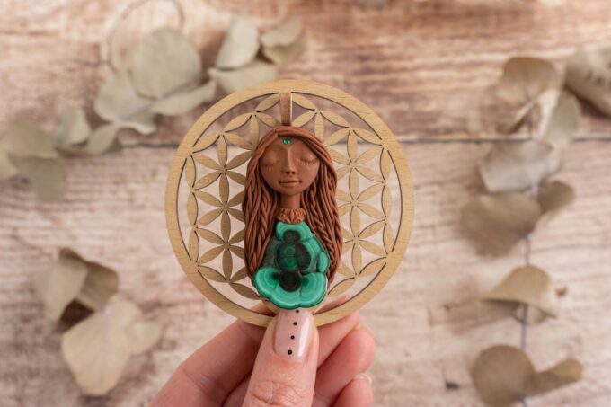 Vsaka Čarobnica je poimenovana po boginjah iz različnih obdobij, kultur in tradicij z vseh koncev sveta. Med izdelavo za vsako Čarobnico posebej povlečem orakelsko karto, ki nosi posebno sporočilo. Z vsako Čarobnico dobite torej še sporočilo, ki ga odkrijete šele, ko odprete paketek.