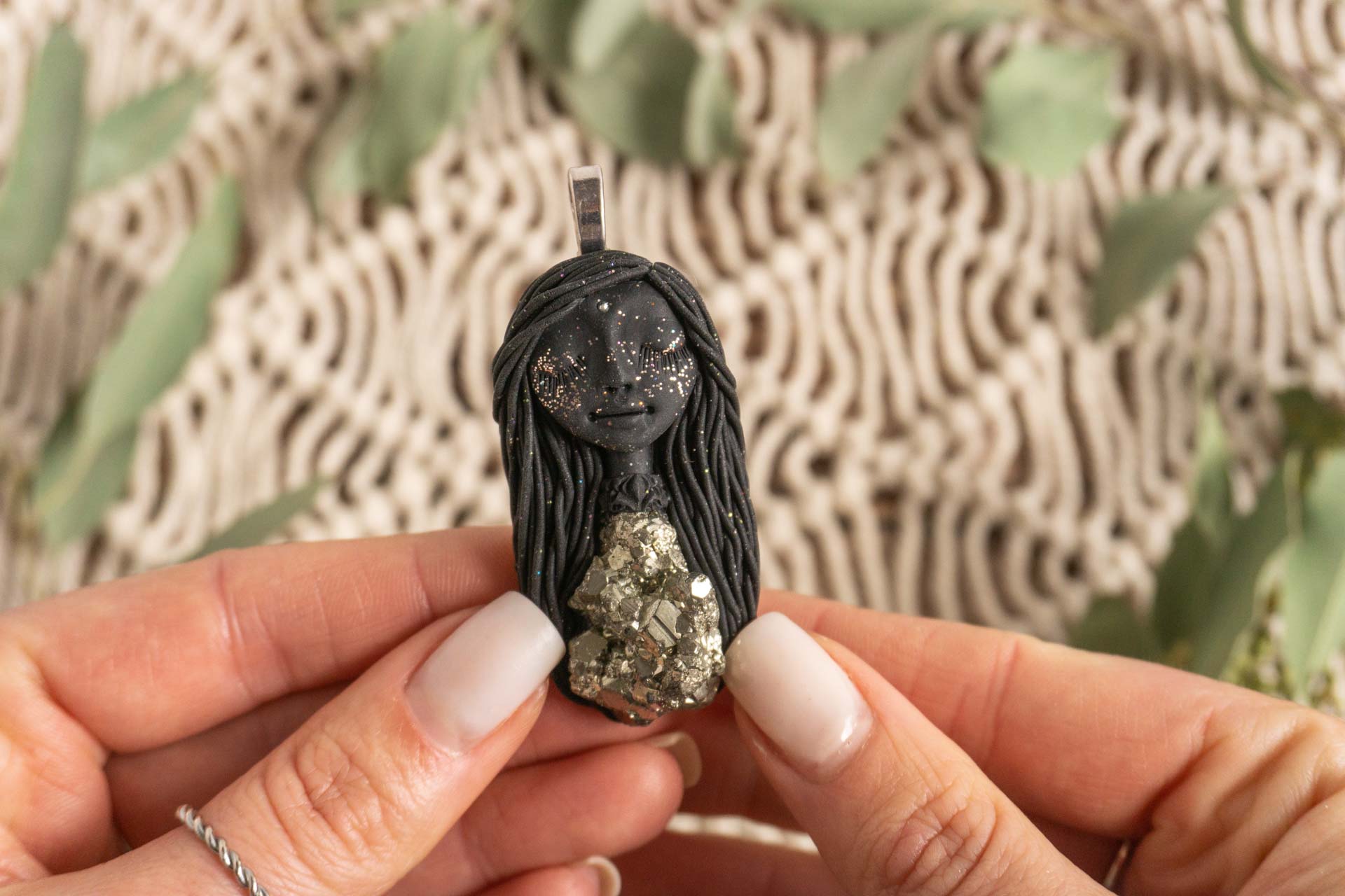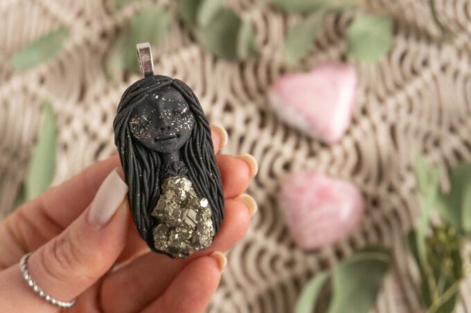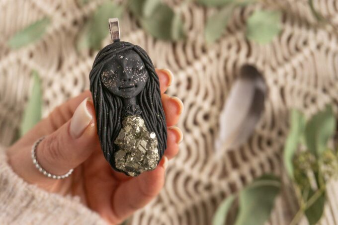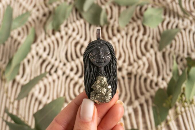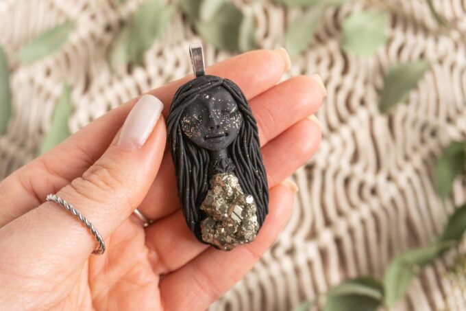 Čarobnica je izdelana iz polimerne gline. Vsak kos je unikaten in na voljo samo en kos. Izdelek lahko minimalno odstopa v barvnih niansah in detajlih, vendar se trudim, da bo vaš izdelek v naravi identičen opisu in fotografiji.