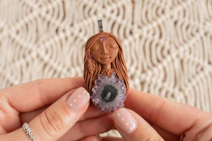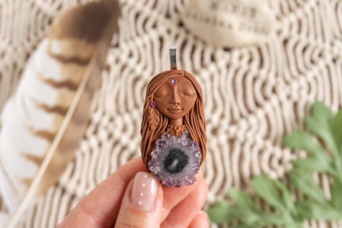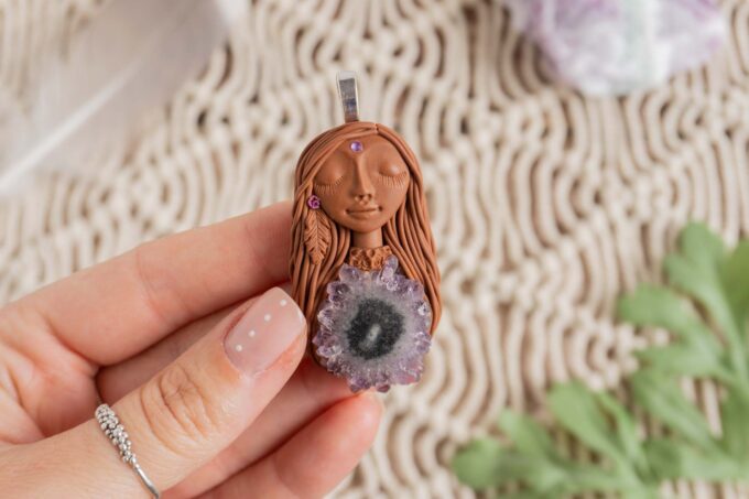 Čarobnica je izdelana iz polimerne gline. Vsak kos je unikaten in na voljo samo en kos. Izdelek lahko minimalno odstopa v barvnih niansah in detajlih, vendar se trudim, da bo vaš izdelek v naravi identičen opisu in fotografiji.