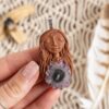 Čarobnico dobite povoščeni rjavi vrvici dolžine 42 cm (s cca 4cm podaljšano ketnico). V paketu pa dobite tudi ketnico dolžine 65 cm, tako da lahko nošenje izdelka prilagodite.