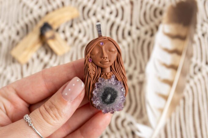 Vsaka Čarobnica je poimenovana po boginjah iz različnih obdobij, kultur in tradicij z vseh koncev sveta. Med izdelavo za vsako Čarobnico posebej povlečem orakelsko karto, ki nosi posebno sporočilo. Z vsako Čarobnico dobite torej še sporočilo, ki ga odkrijete šele, ko odprete paketek.