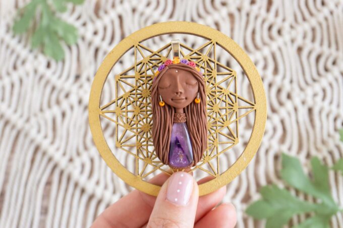 Vsaka Čarobnica je poimenovana po boginjah iz različnih obdobij, kultur in tradicij z vseh koncev sveta. Med izdelavo za vsako Čarobnico posebej povlečem orakelsko karto, ki nosi posebno sporočilo. Z vsako Čarobnico dobite torej še sporočilo, ki ga odkrijete šele, ko odprete paketek.
