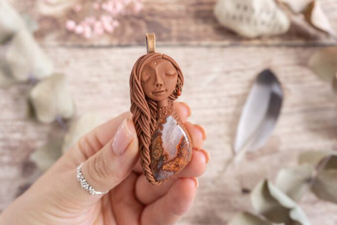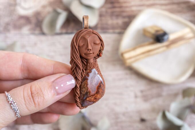 Čarobnica je izdelana iz polimerne gline. Vsak kos je unikaten in na voljo samo en kos. Izdelek lahko minimalno odstopa v barvnih niansah in detajlih, vendar se trudim, da bo vaš izdelek v naravi identičen opisu in fotografiji.