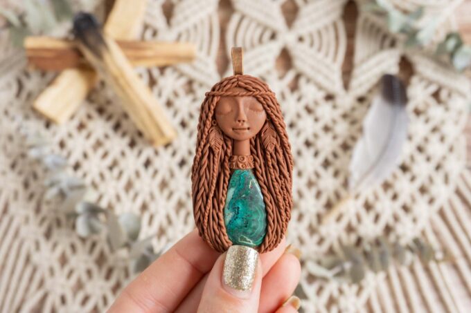 Čarobnica je izdelana iz polimerne gline. Vsak kos je unikaten in na voljo samo en kos. Izdelek lahko minimalno odstopa v barvnih niansah in detajlih, vendar se trudim, da bo vaš izdelek v naravi identičen opisu in fotografiji.