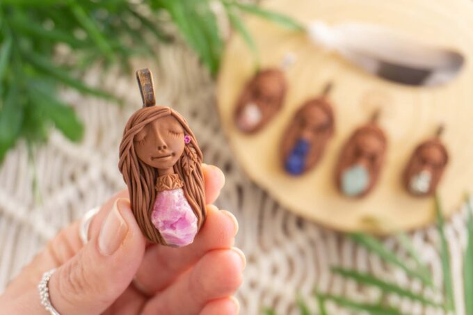 Vsaka Čarobnica je poimenovana po boginjah iz različnih obdobij, kultur in tradicij z vseh koncev sveta. Med izdelavo za vsako Čarobnico posebej povlečem orakelsko karto, ki nosi posebno sporočilo. Z vsako Čarobnico dobite torej še sporočilo, ki ga odkrijete šele, ko odprete paketek.