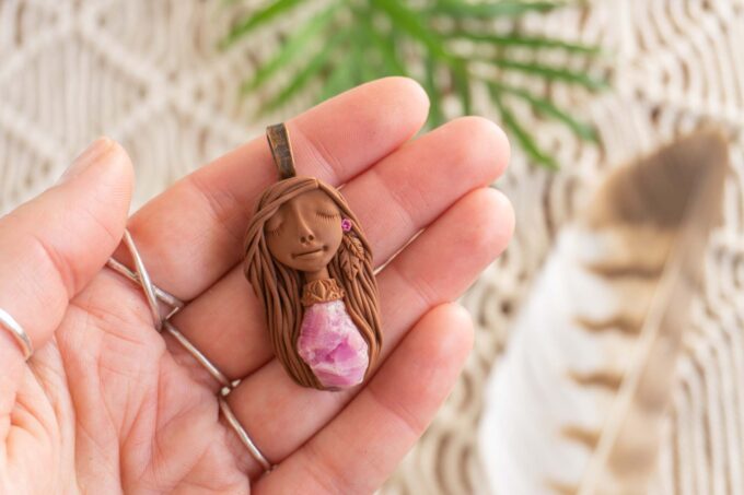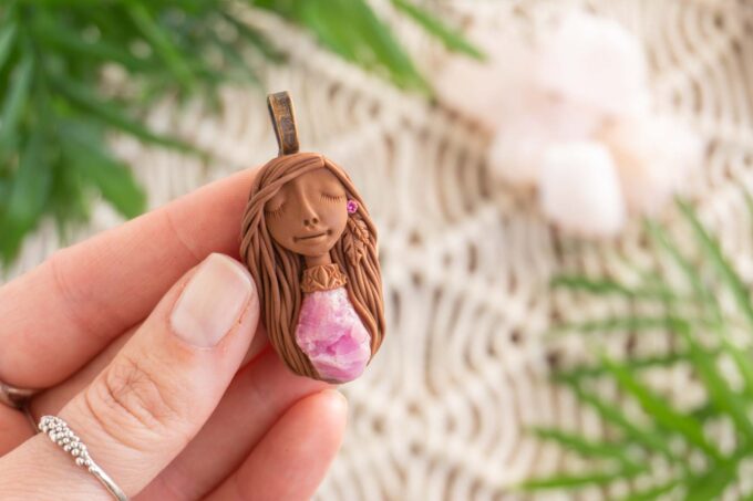 Čarobnica je izdelana iz polimerne gline. Vsak kos je unikaten in na voljo samo en kos. Izdelek lahko minimalno odstopa v barvnih niansah in detajlih, vendar se trudim, da bo vaš izdelek v naravi identičen opisu in fotografiji.