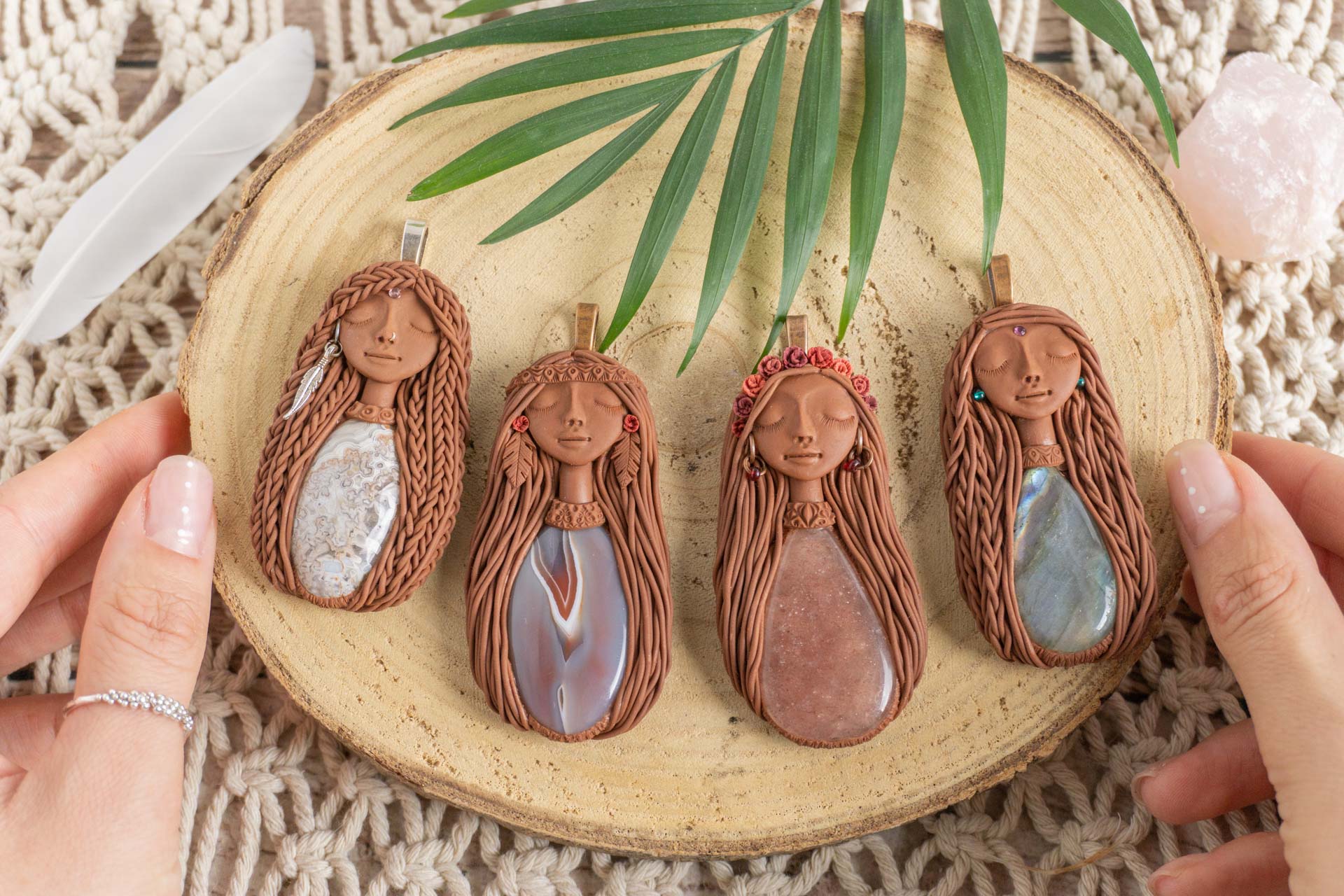Vsaka Čarobnica je poimenovana po boginjah iz različnih obdobij, kultur in tradicij z vseh koncev sveta. Med izdelavo za vsako Čarobnico posebej povlečem orakelsko karto, ki nosi posebno sporočilo. Z vsako Čarobnico dobite torej še sporočilo, ki ga odkrijete šele, ko odprete paketek.