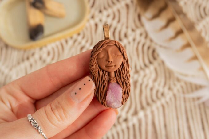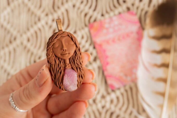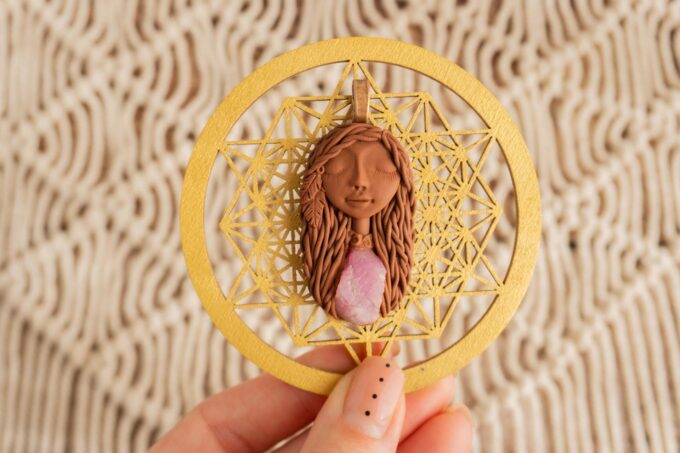 Vsaka Čarobnica je poimenovana po boginjah iz različnih obdobij, kultur in tradicij z vseh koncev sveta. Med izdelavo za vsako Čarobnico posebej povlečem orakelsko karto, ki nosi posebno sporočilo. Z vsako Čarobnico dobite torej še sporočilo, ki ga odkrijete šele, ko odprete paketek.