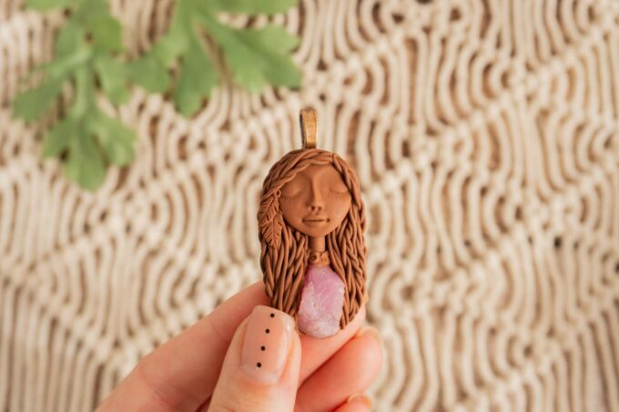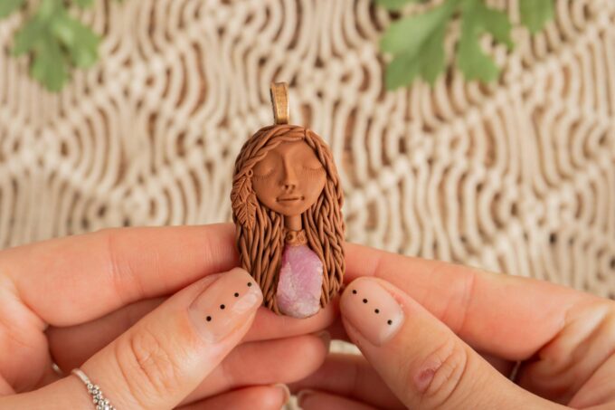Čarobnica je izdelana iz polimerne gline. Vsak kos je unikaten in na voljo samo en kos. Izdelek lahko minimalno odstopa v barvnih niansah in detajlih, vendar se trudim, da bo vaš izdelek v naravi identičen opisu in fotografiji.