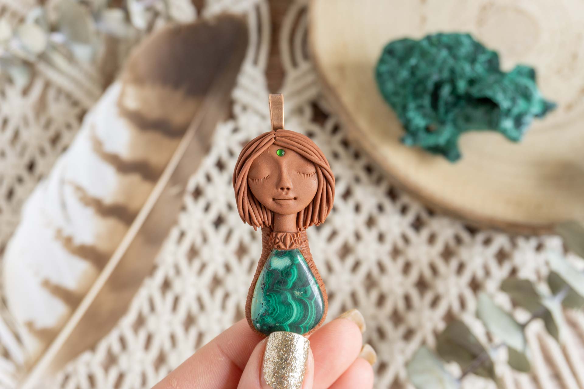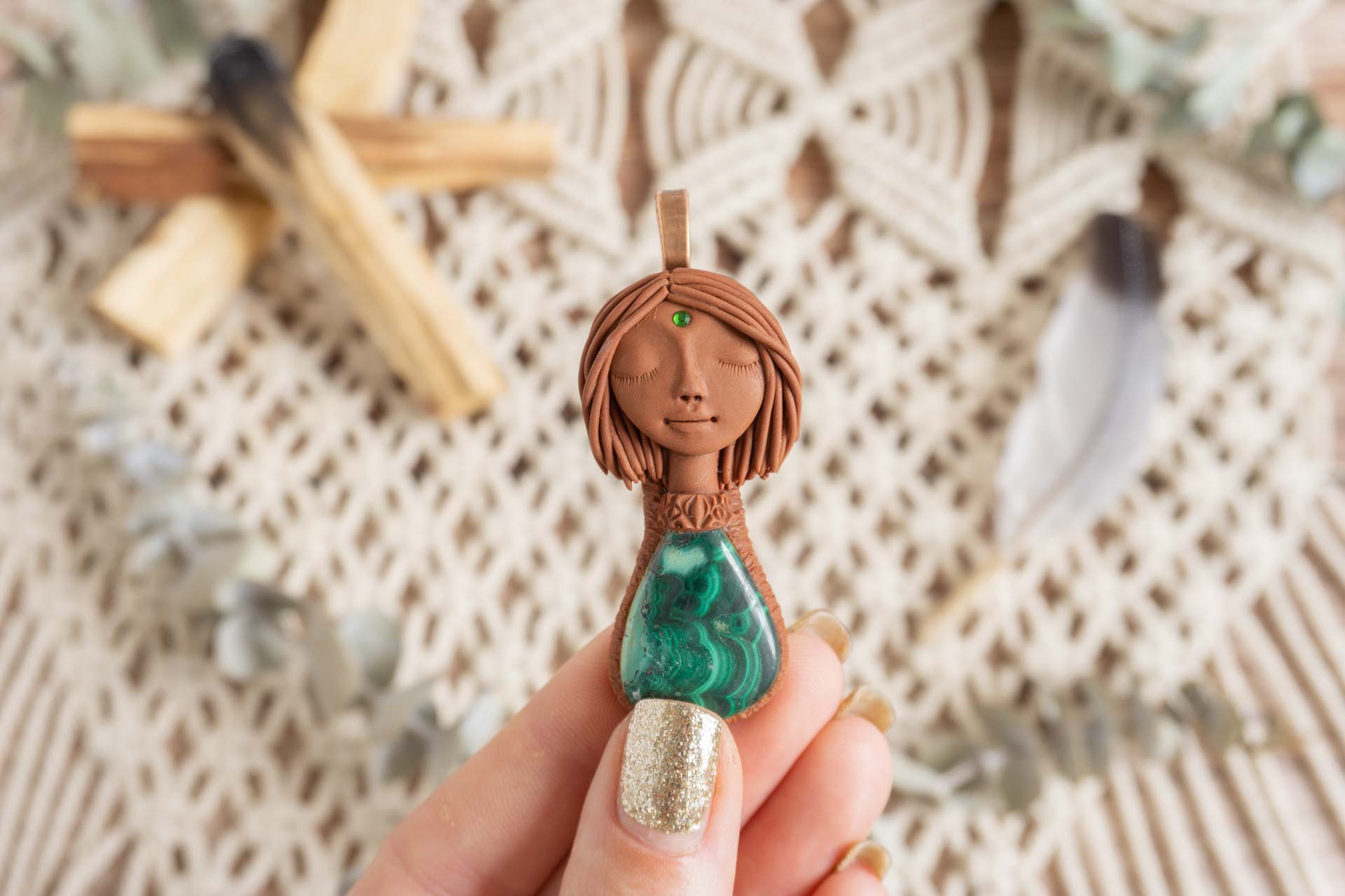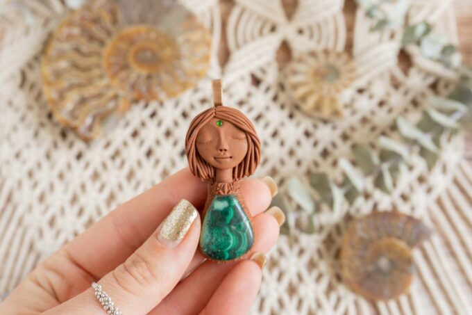 Čarobnica je izdelana iz polimerne gline. Vsak kos je unikaten in na voljo samo en kos. Izdelek lahko minimalno odstopa v barvnih niansah in detajlih, vendar se trudim, da bo vaš izdelek v naravi identičen opisu in fotografiji.