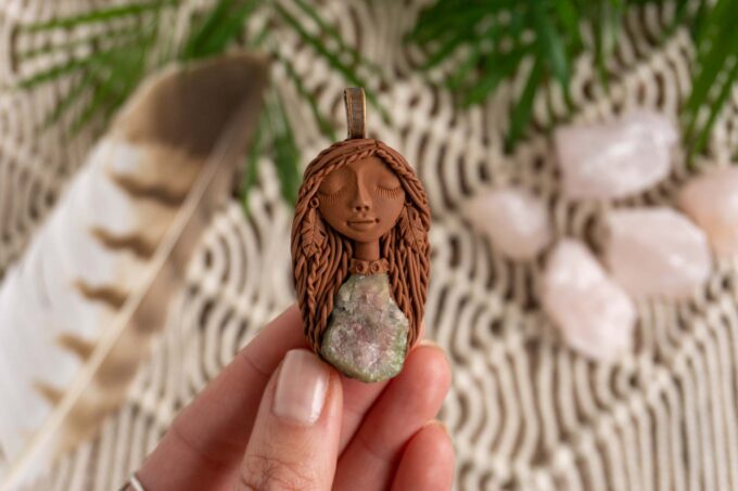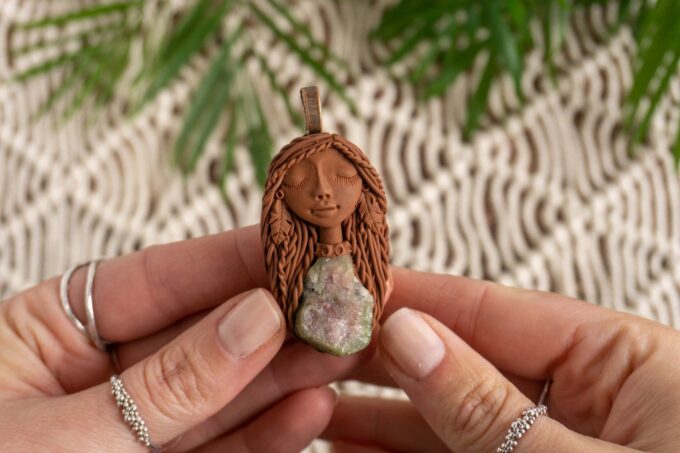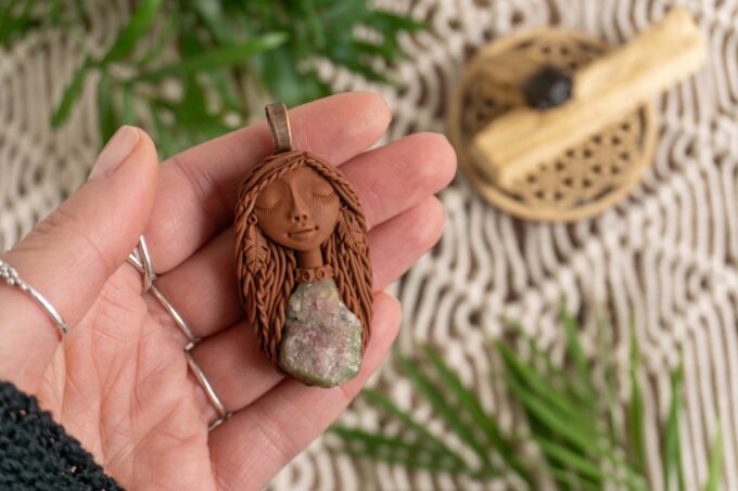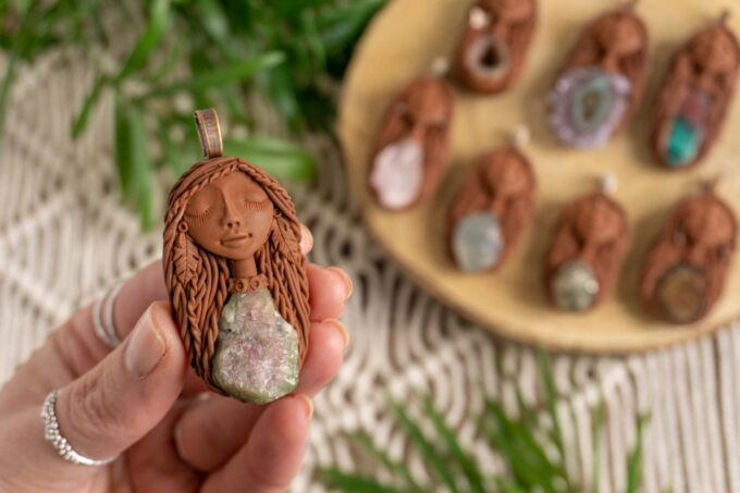 Vsaka Čarobnica je poimenovana po boginjah iz različnih obdobij, kultur in tradicij z vseh koncev sveta. Med izdelavo za vsako Čarobnico posebej povlečem orakelsko karto, ki nosi posebno sporočilo. Z vsako Čarobnico dobite torej še sporočilo, ki ga odkrijete šele, ko odprete paketek.