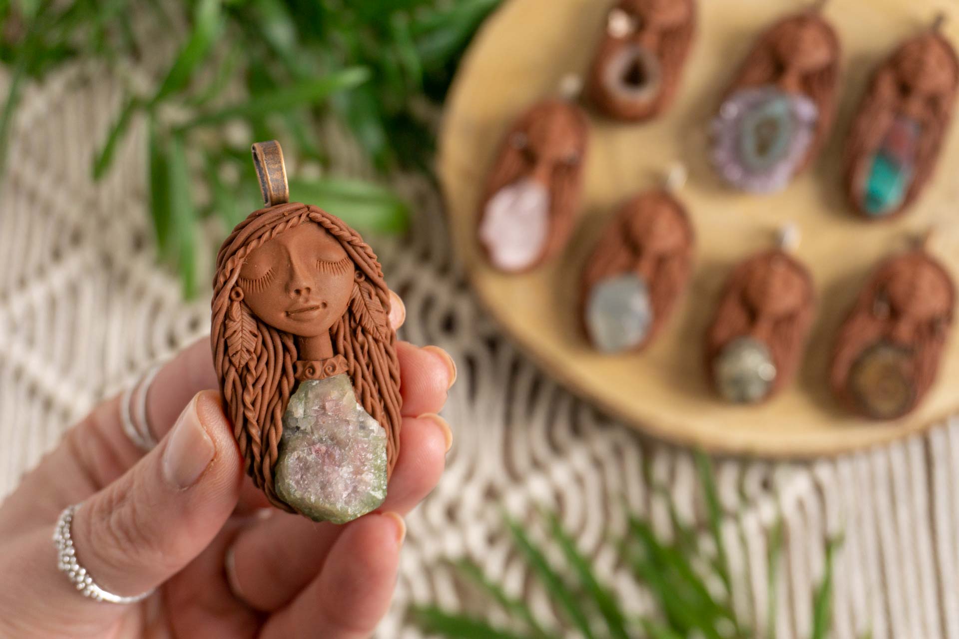 Čarobnice vsebujejo kristale in poldrage kamne. Vsak izdelek je unikaten in ima posebno zgodbo. Tako kot nas določeni kamni pritegnejo in se povežejo z našo energijo, tako tudi Čarobnice iščejo svoje lastnike. Čarobnico si izberete intuitivno ali pa na podlagi kamna, ki ga vsebuje.