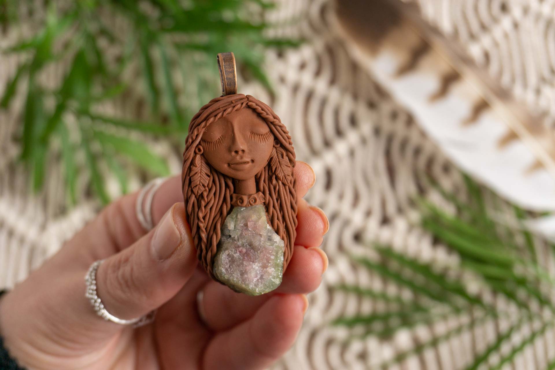 Čarobnica je izdelana iz polimerne gline. Vsak kos je unikaten in na voljo samo en kos. Izdelek lahko minimalno odstopa v barvnih niansah in detajlih, vendar se trudim, da bo vaš izdelek v naravi identičen opisu in fotografiji.
