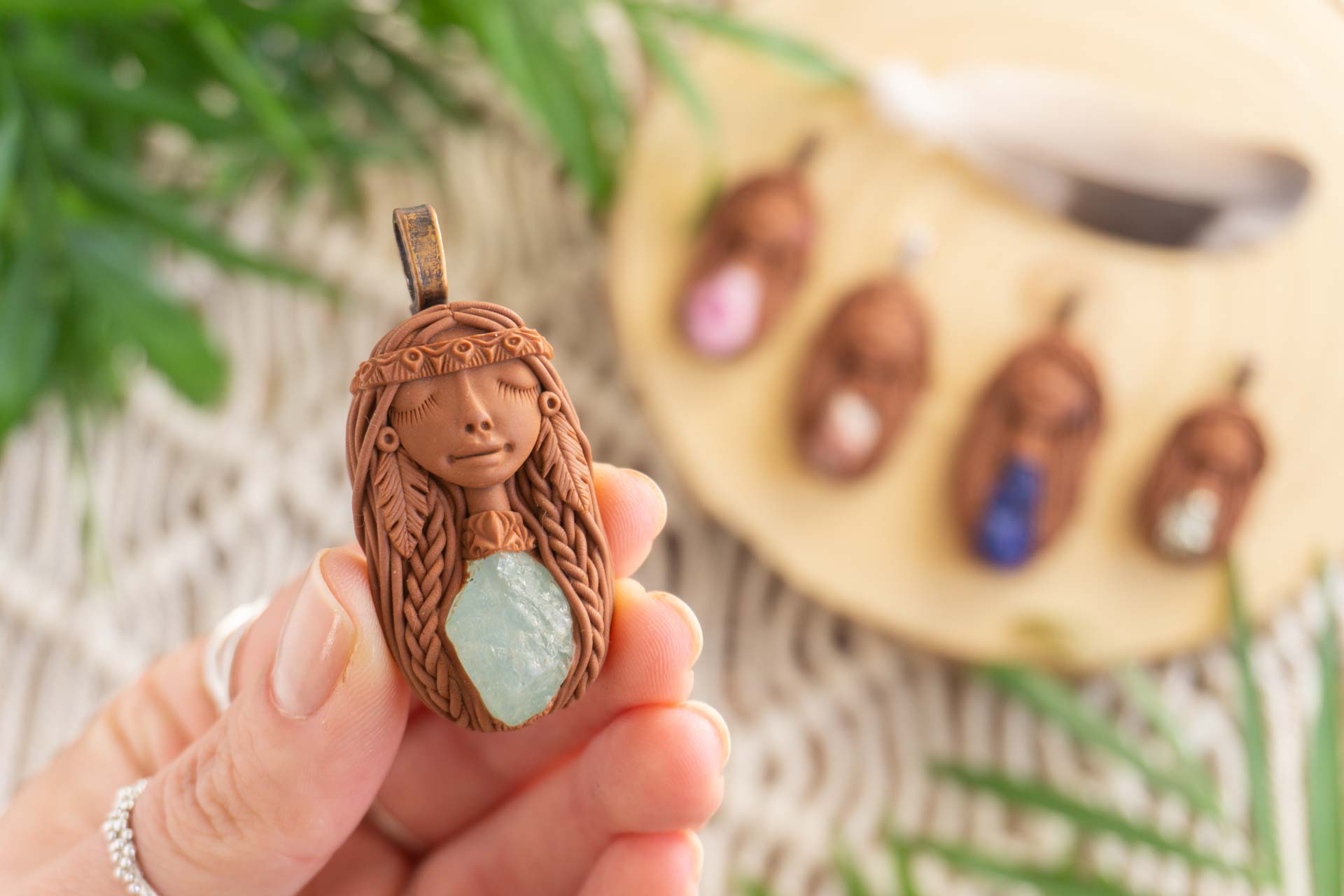 Vsaka Čarobnica je poimenovana po boginjah iz različnih obdobij, kultur in tradicij z vseh koncev sveta. Med izdelavo za vsako Čarobnico posebej povlečem orakelsko karto, ki nosi posebno sporočilo. Z vsako Čarobnico dobite torej še sporočilo, ki ga odkrijete šele, ko odprete paketek.