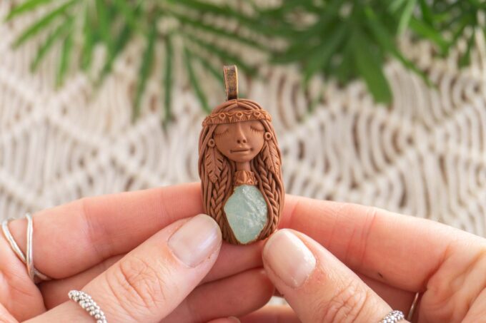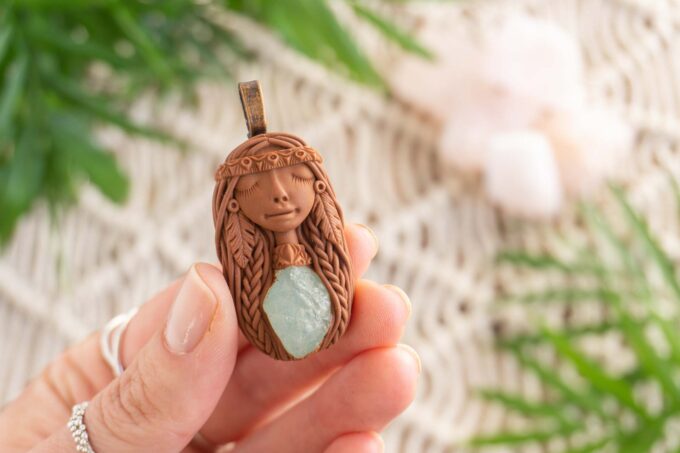 Čarobnica je izdelana iz polimerne gline. Vsak kos je unikaten in na voljo samo en kos. Izdelek lahko minimalno odstopa v barvnih niansah in detajlih, vendar se trudim, da bo vaš izdelek v naravi identičen opisu in fotografiji.