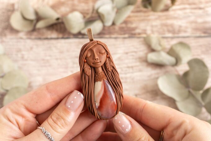Čarobnica je izdelana iz polimerne gline. Vsak kos je unikaten in na voljo samo en kos. Izdelek lahko minimalno odstopa v barvnih niansah in detajlih, vendar se trudim, da bo vaš izdelek v naravi identičen opisu in fotografiji.