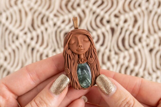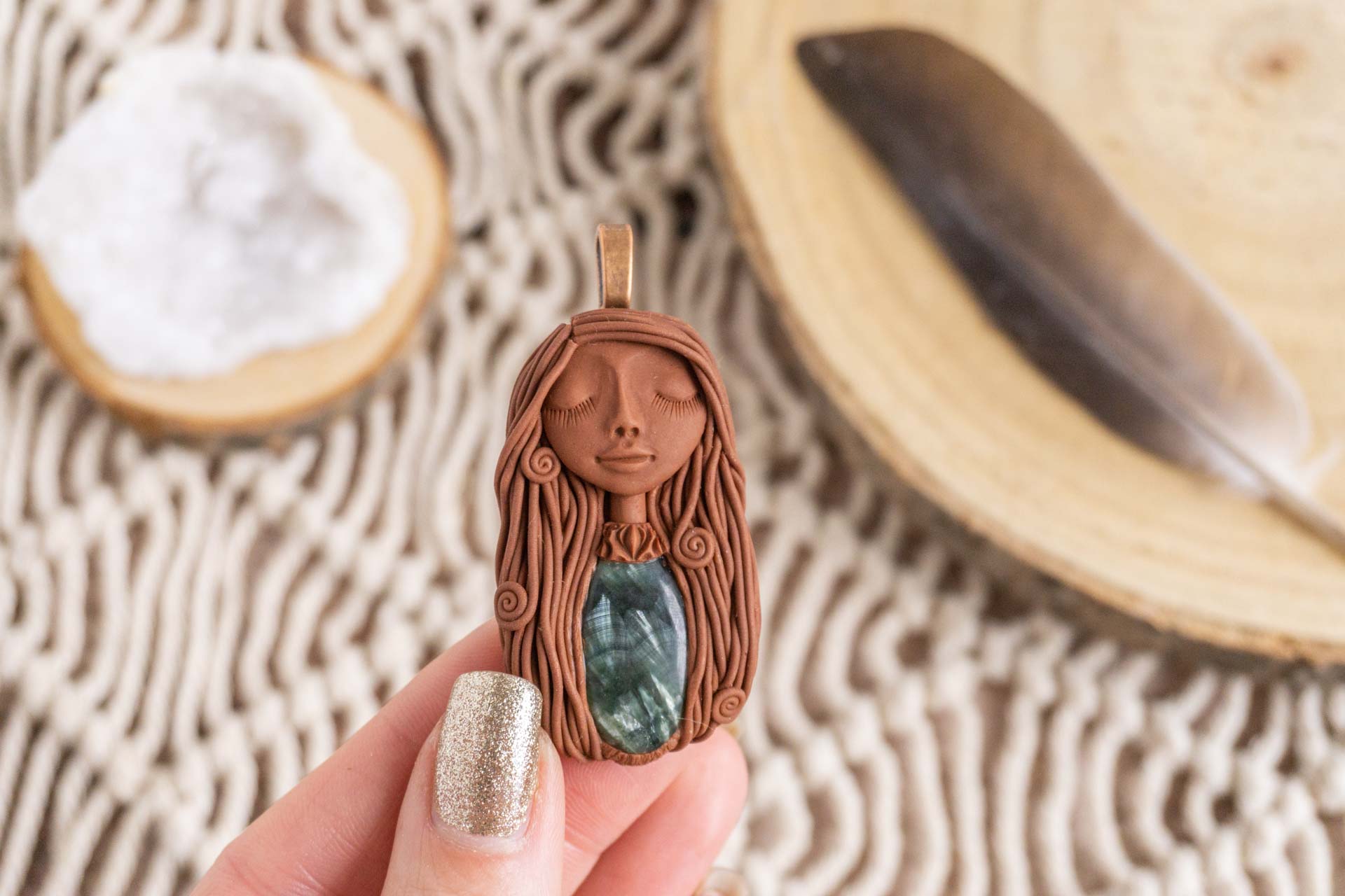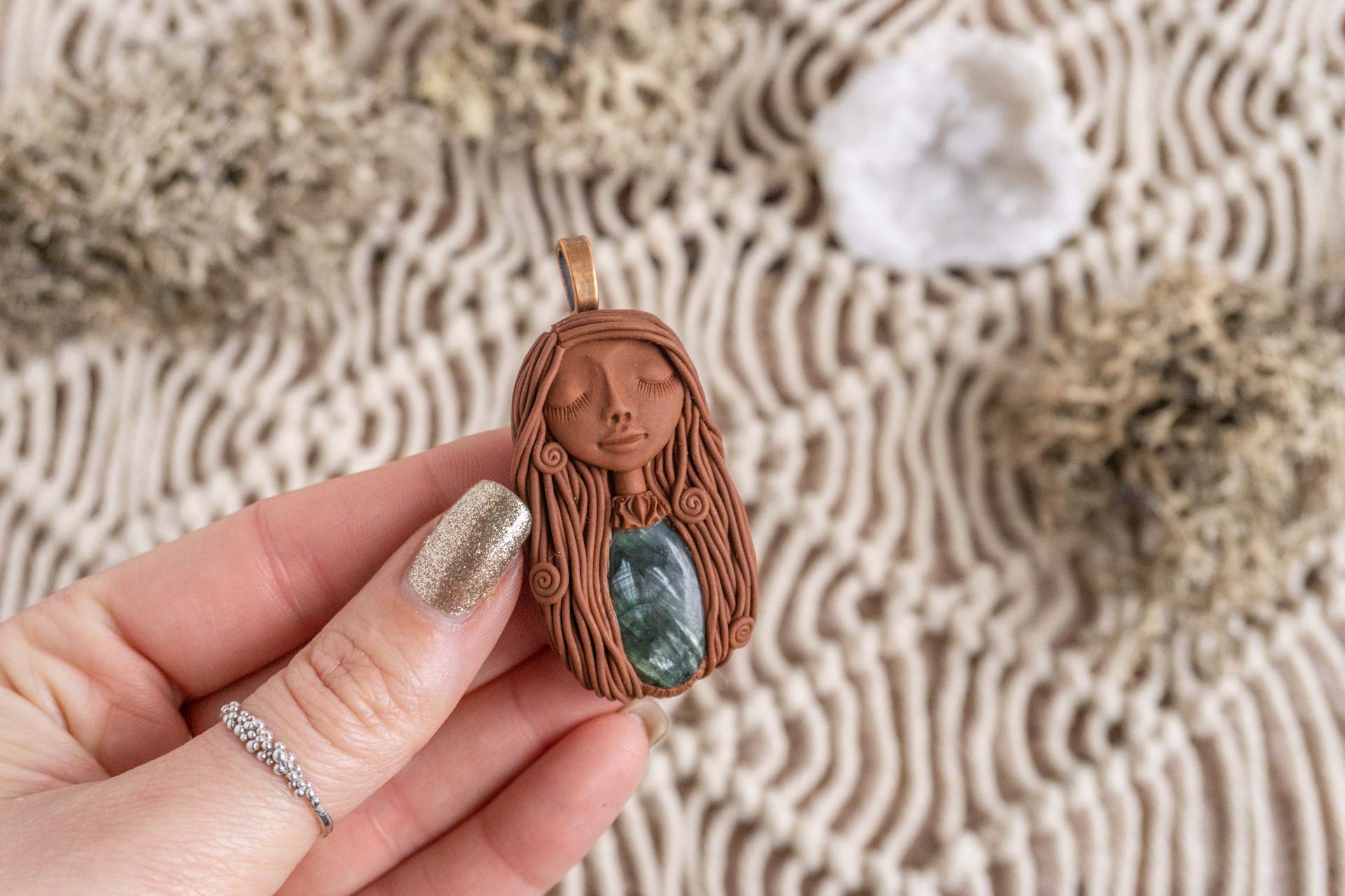 Čarobnica je izdelana iz polimerne gline. Vsak kos je unikaten in na voljo samo en kos. Izdelek lahko minimalno odstopa v barvnih niansah in detajlih, vendar se trudim, da bo vaš izdelek v naravi identičen opisu in fotografiji.