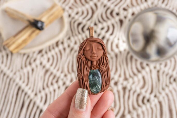 Vsaka Čarobnica je poimenovana po boginjah iz različnih obdobij, kultur in tradicij z vseh koncev sveta. Med izdelavo za vsako Čarobnico posebej povlečem orakelsko karto, ki nosi posebno sporočilo. Z vsako Čarobnico dobite torej še sporočilo, ki ga odkrijete šele, ko odprete paketek.