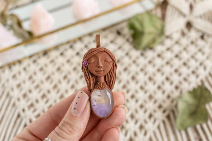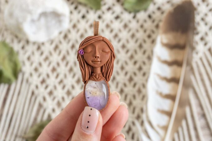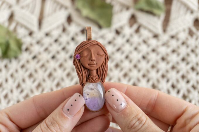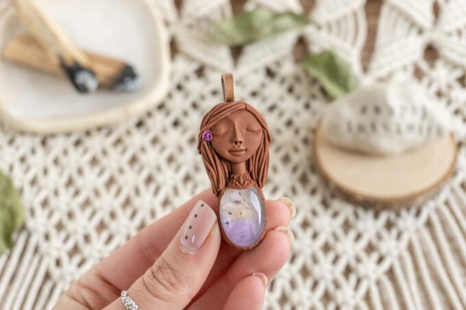 Čarobnica je izdelana iz polimerne gline. Vsak kos je unikaten in na voljo samo en kos. Izdelek lahko minimalno odstopa v barvnih niansah in detajlih, vendar se trudim, da bo vaš izdelek v naravi identičen opisu in fotografiji.