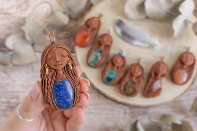 Vsaka Čarobnica je poimenovana po boginjah iz različnih obdobij, kultur in tradicij z vseh koncev sveta. Med izdelavo za vsako Čarobnico posebej povlečem orakelsko karto, ki nosi posebno sporočilo. Z vsako Čarobnico dobite torej še sporočilo, ki ga odkrijete šele, ko odprete paketek.