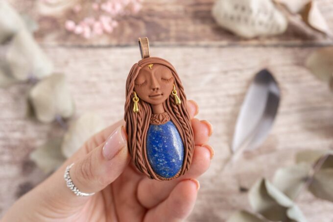 Čarobnica je izdelana iz polimerne gline. Vsak kos je unikaten in na voljo samo en kos. Izdelek lahko minimalno odstopa v barvnih niansah in detajlih, vendar se trudim, da bo vaš izdelek v naravi identičen opisu in fotografiji.