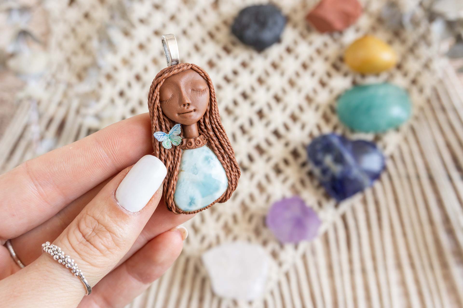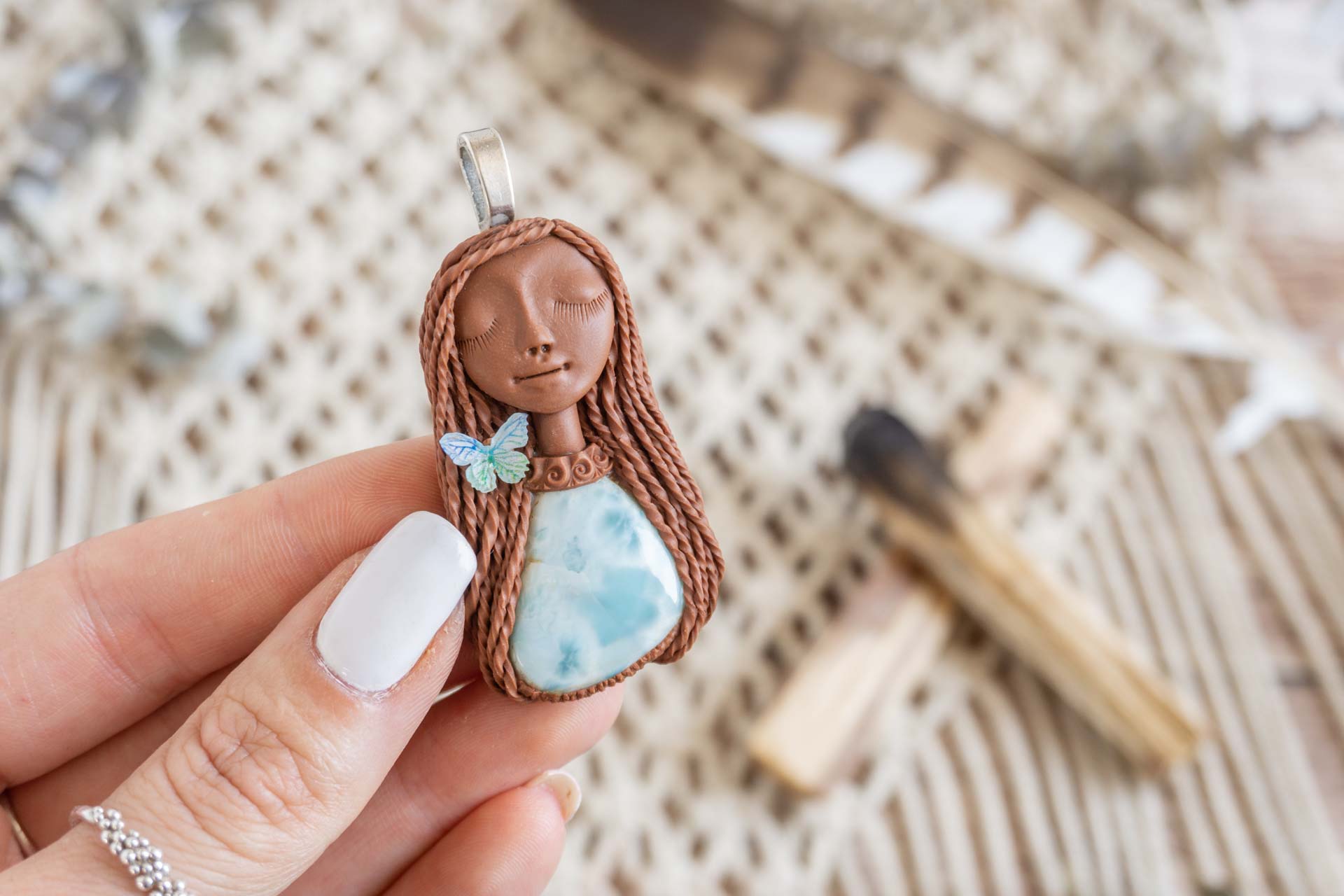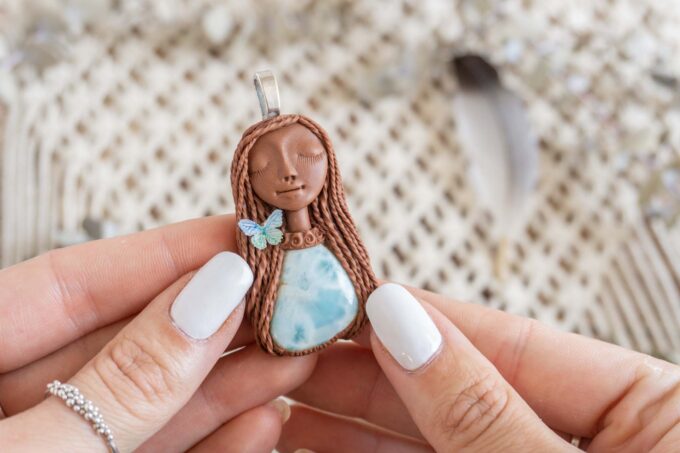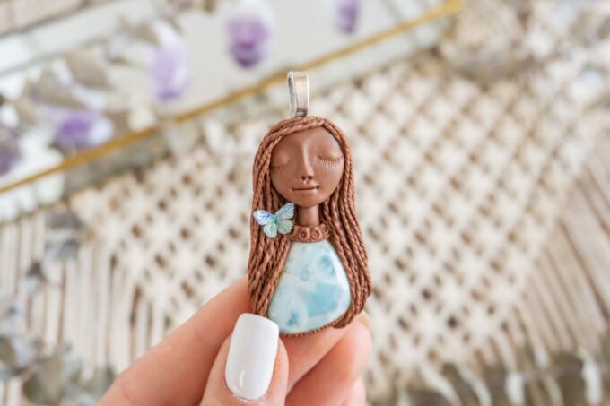 Čarobnica je izdelana iz polimerne gline. Vsak kos je unikaten in na voljo samo en kos. Izdelek lahko minimalno odstopa v barvnih niansah in detajlih, vendar se trudim, da bo vaš izdelek v naravi identičen opisu in fotografiji.