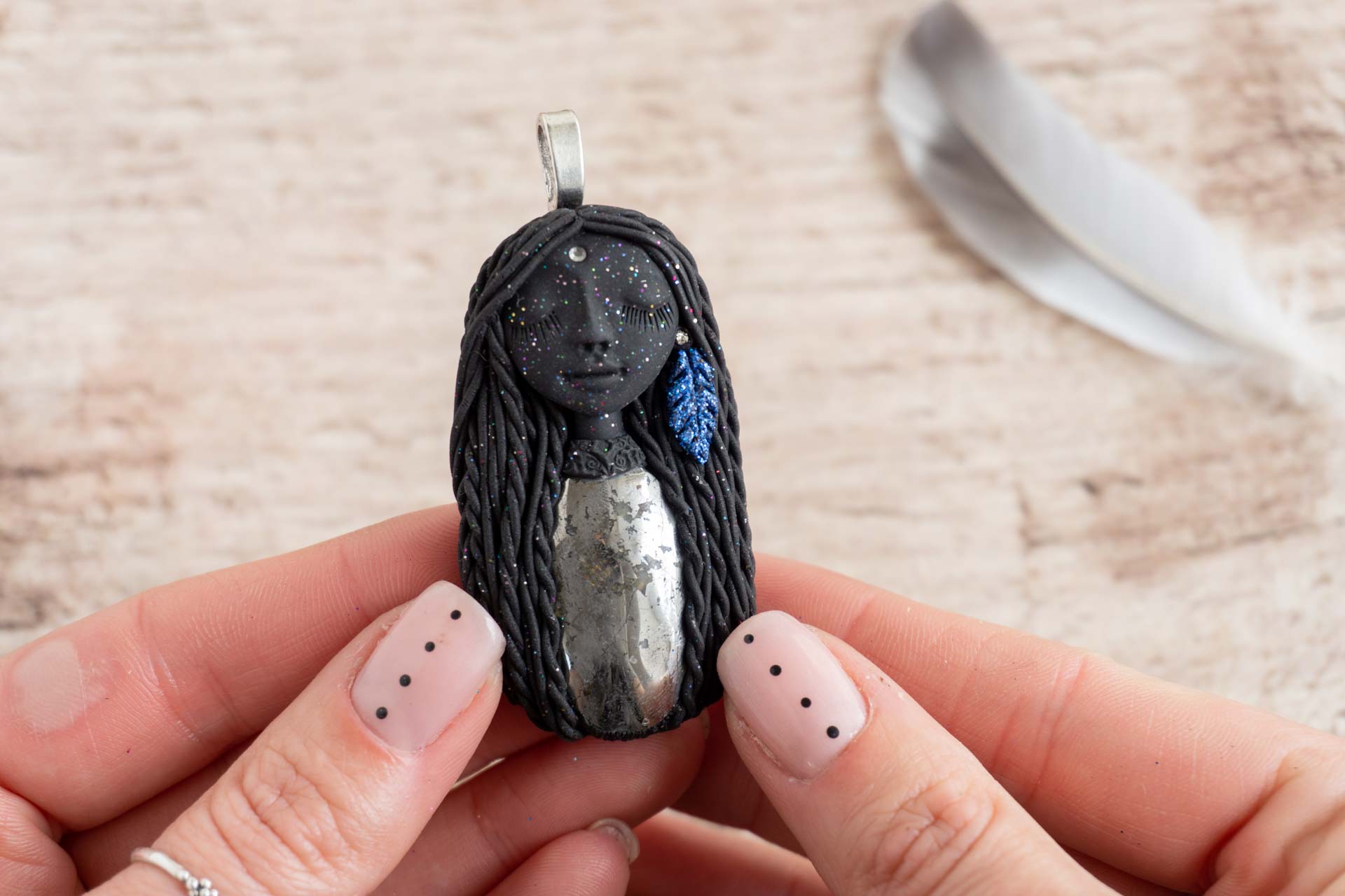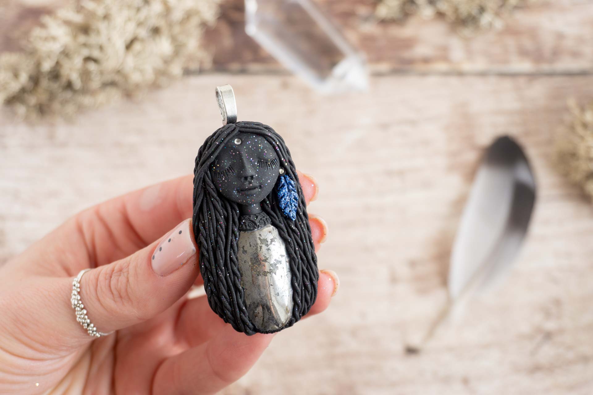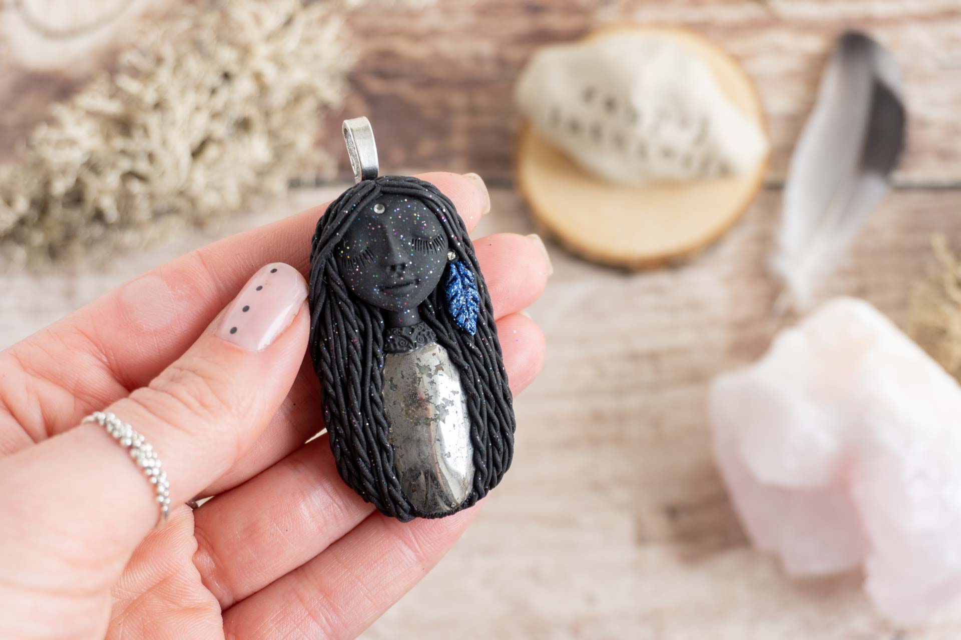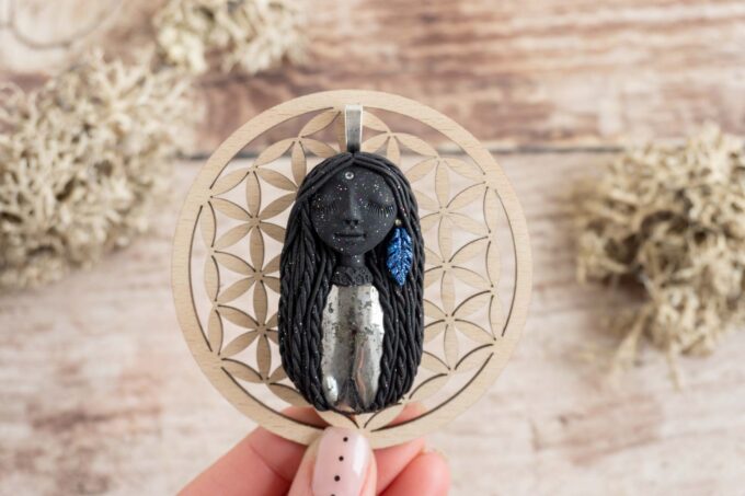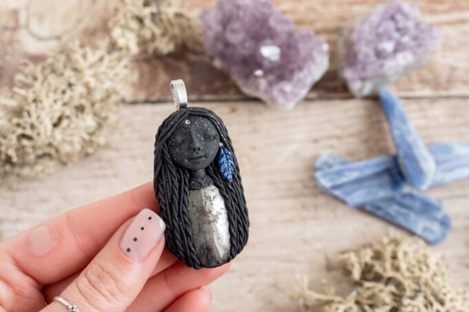 Čarobnica je izdelana iz polimerne gline. Vsak kos je unikaten in na voljo samo en kos. Izdelek lahko minimalno odstopa v barvnih niansah in detajlih, vendar se trudim, da bo vaš izdelek v naravi identičen opisu in fotografiji.