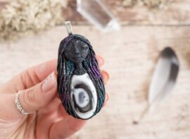 Vsaka Čarobnica je poimenovana po boginjah iz različnih obdobij, kultur in tradicij z vseh koncev sveta. Med izdelavo za vsako Čarobnico posebej povlečem orakelsko karto, ki nosi posebno sporočilo. Z vsako Čarobnico dobite torej še sporočilo, ki ga odkrijete šele, ko odprete paketek.