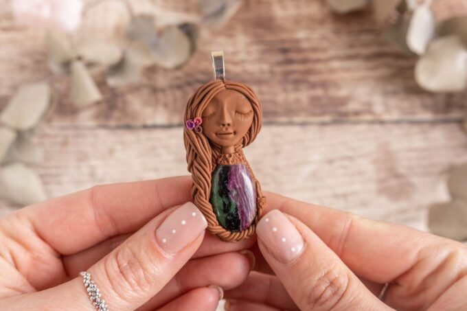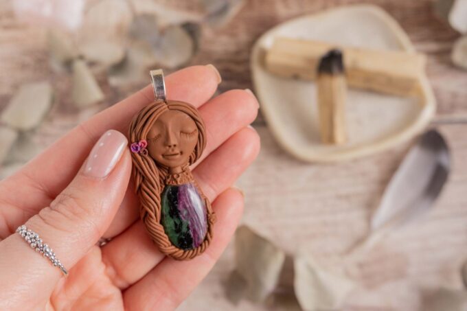 Čarobnica je izdelana iz polimerne gline. Vsak kos je unikaten in na voljo samo en kos. Izdelek lahko minimalno odstopa v barvnih niansah in detajlih, vendar se trudim, da bo vaš izdelek v naravi identičen opisu in fotografiji.