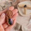 Čarobnico dobite povoščeni rjavi vrvici dolžine 42 cm (s cca 4cm podaljšano ketnico). V paketu pa dobite tudi ketnico dolžine 65 cm, tako da lahko nošenje izdelka prilagodite.
