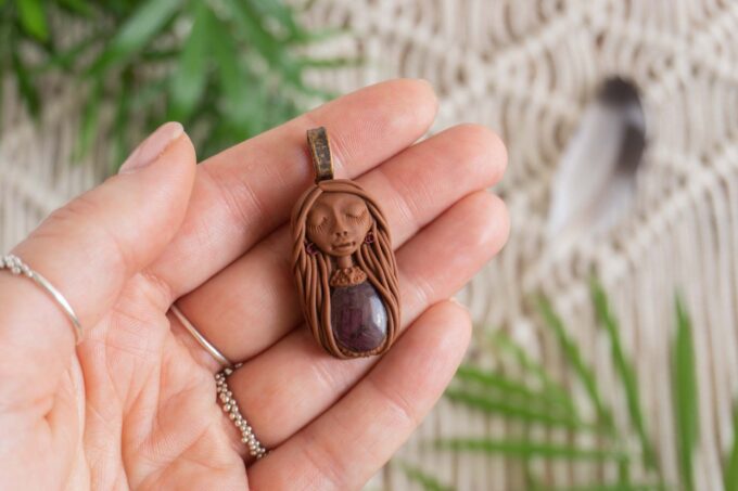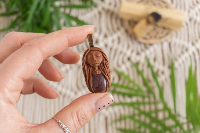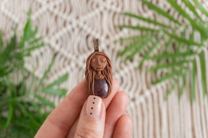 Čarobnica je izdelana iz polimerne gline. Vsak kos je unikaten in na voljo samo en kos. Izdelek lahko minimalno odstopa v barvnih niansah in detajlih, vendar se trudim, da bo vaš izdelek v naravi identičen opisu in fotografiji.