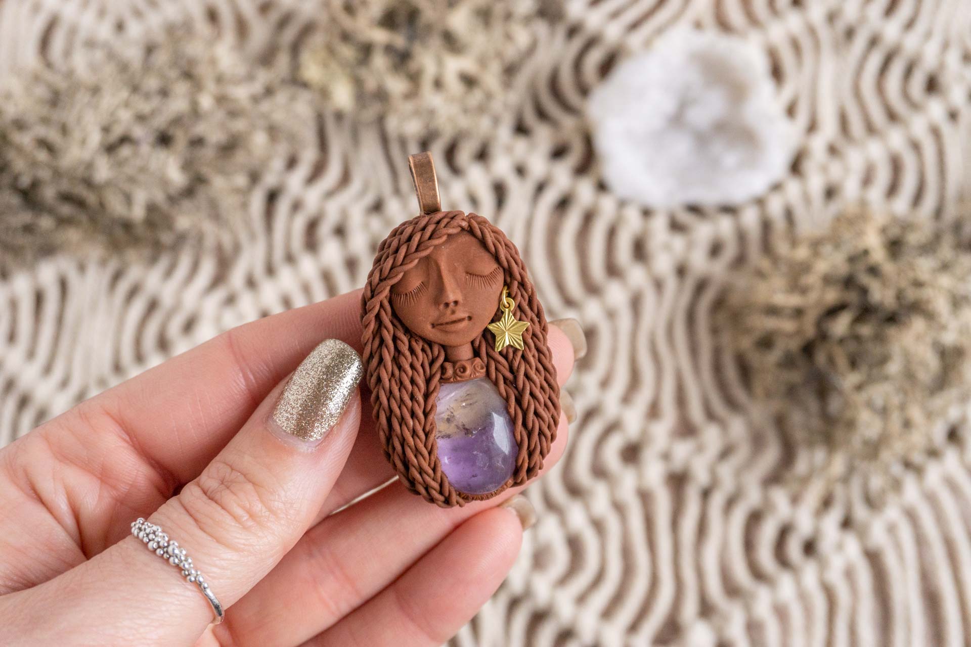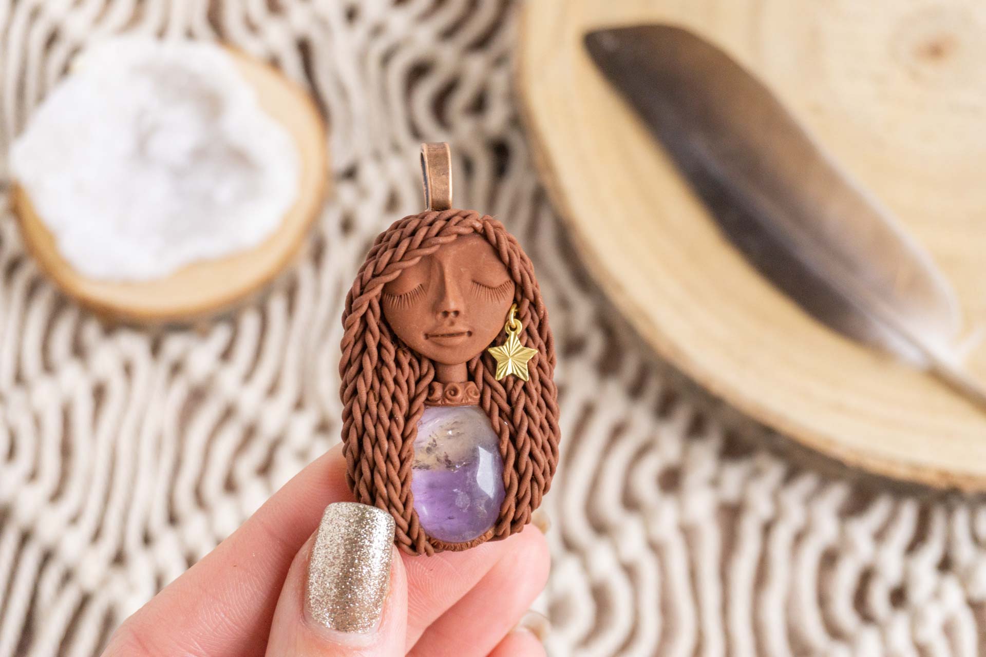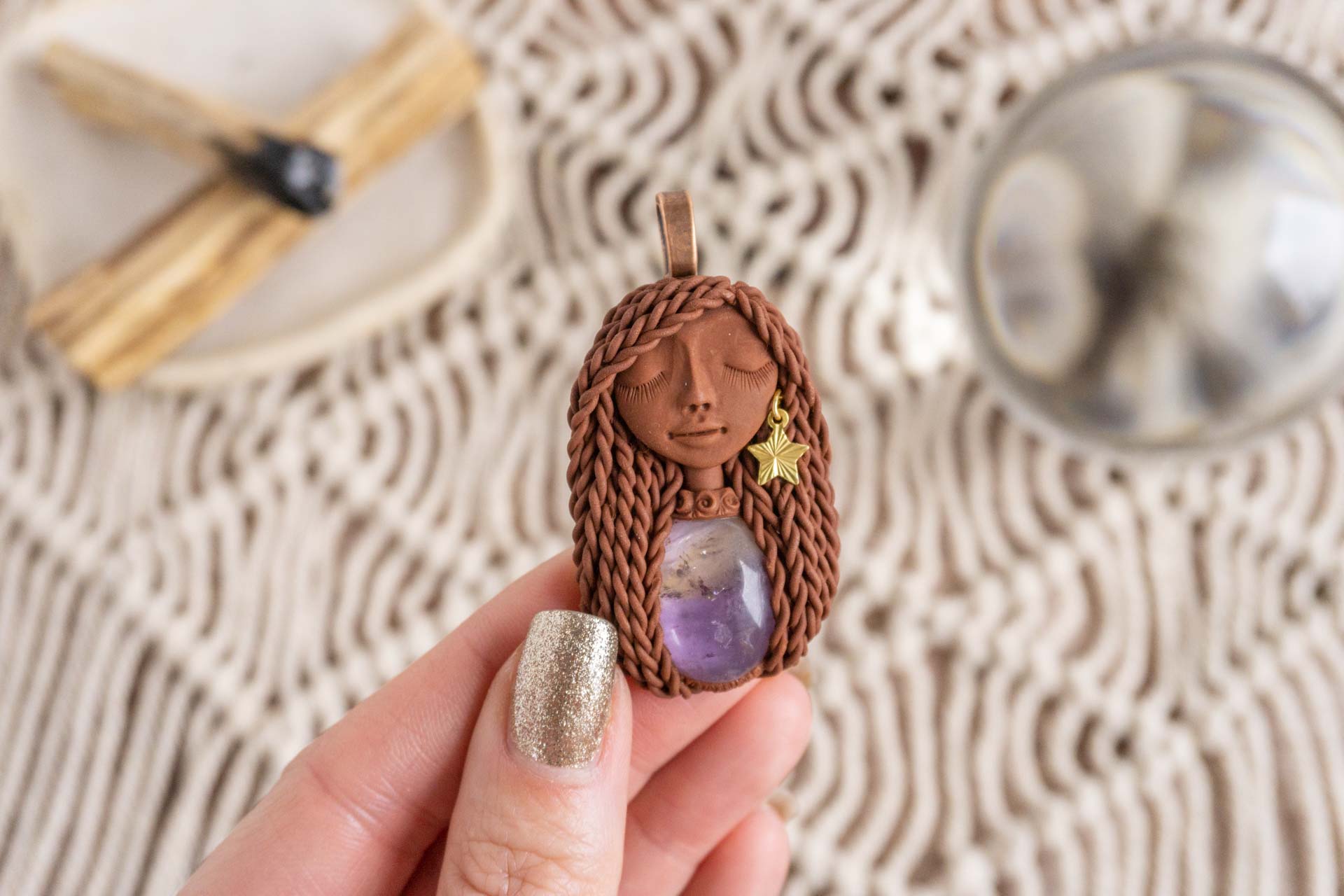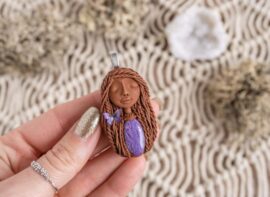 Čarobnica je izdelana iz polimerne gline. Vsak kos je unikaten in na voljo samo en kos. Izdelek lahko minimalno odstopa v barvnih niansah in detajlih, vendar se trudim, da bo vaš izdelek v naravi identičen opisu in fotografiji.