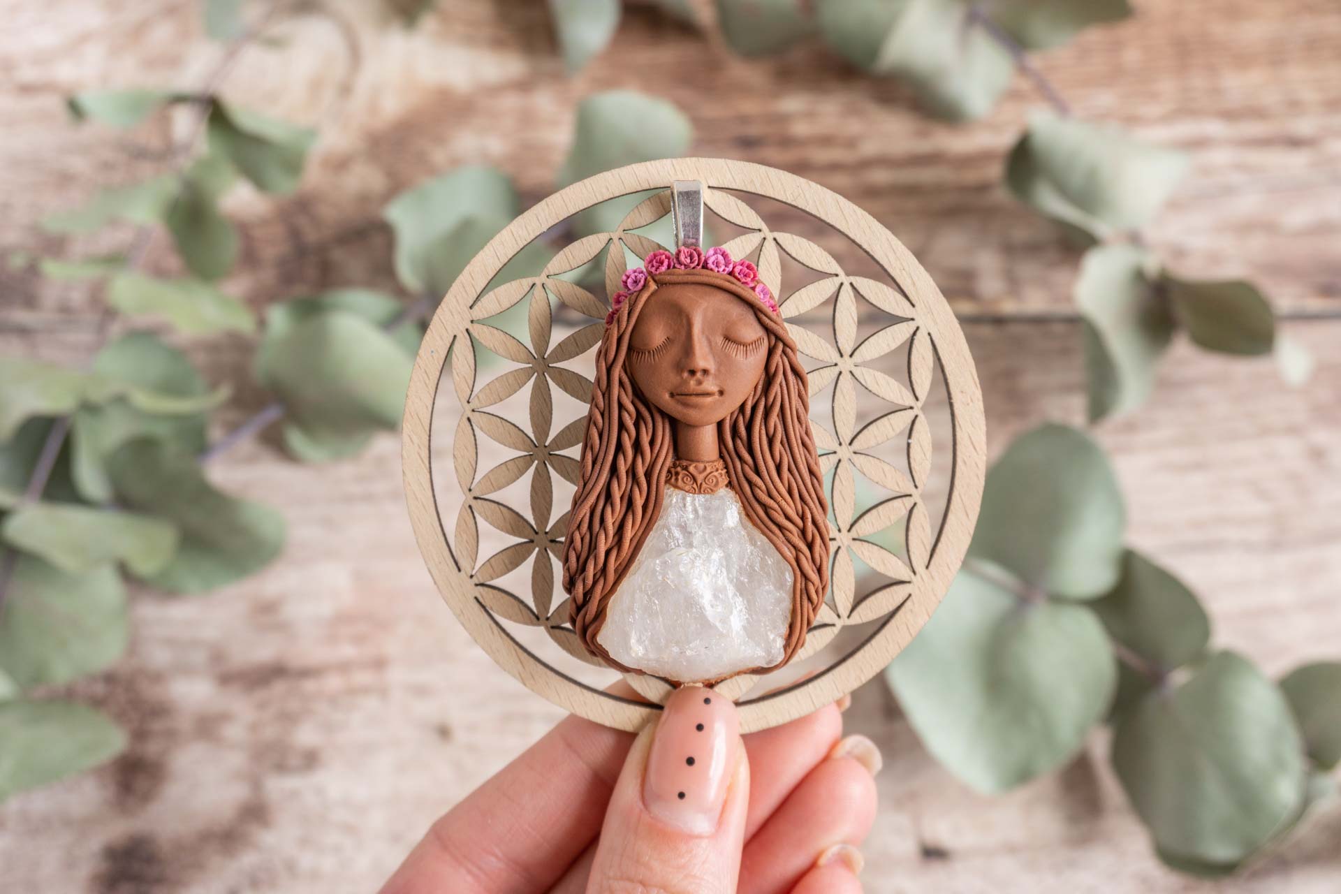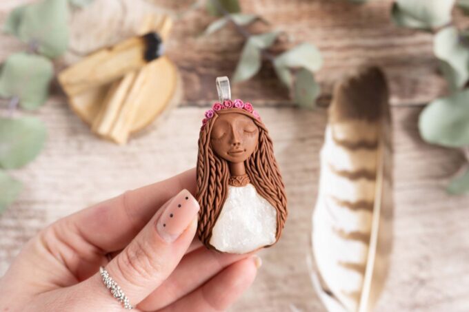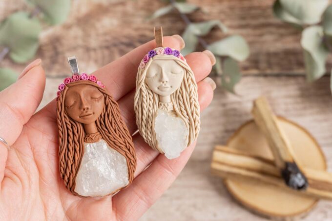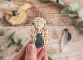 Vsaka Čarobnica je poimenovana po boginjah iz različnih obdobij, kultur in tradicij z vseh koncev sveta. Med izdelavo za vsako Čarobnico posebej povlečem orakelsko karto, ki nosi posebno sporočilo. Z vsako Čarobnico dobite torej še sporočilo, ki ga odkrijete šele, ko odprete paketek.