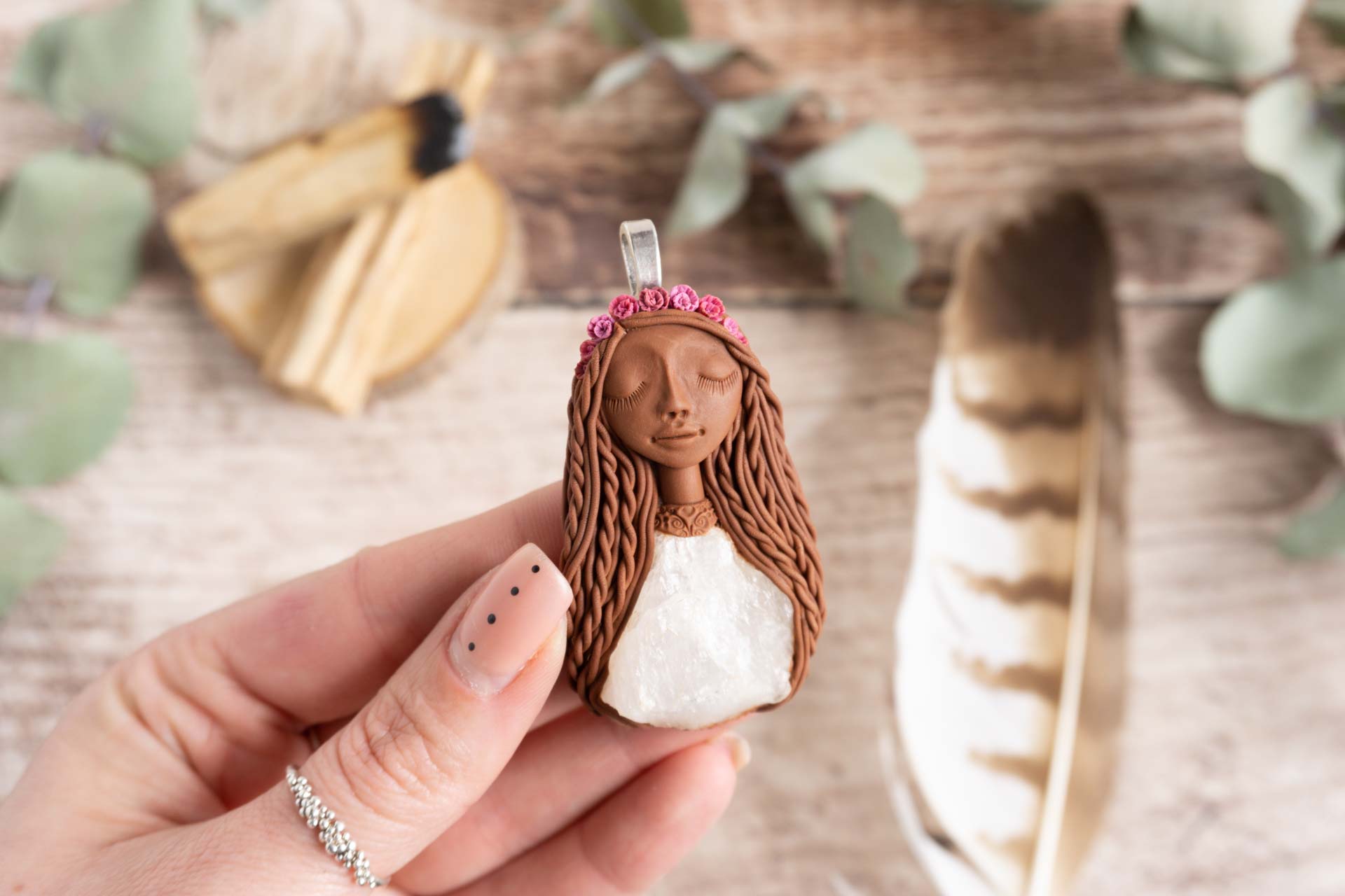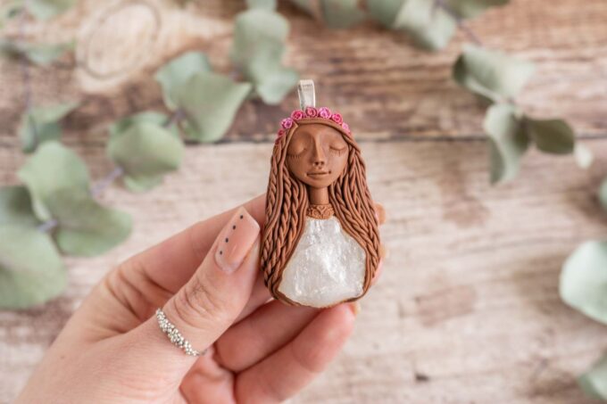 Čarobnica je izdelana iz polimerne gline. Vsak kos je unikaten in na voljo samo en kos. Izdelek lahko minimalno odstopa v barvnih niansah in detajlih, vendar se trudim, da bo vaš izdelek v naravi identičen opisu in fotografiji.