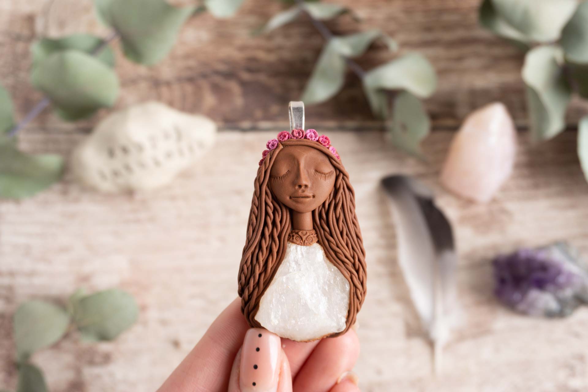 Čarobnice vsebujejo kristale in poldrage kamne. Vsak izdelek je unikaten in ima posebno zgodbo. Tako kot nas določeni kamni pritegnejo in se povežejo z našo energijo, tako tudi Čarobnice iščejo svoje lastnike. Čarobnico si izberete intuitivno ali pa na podlagi kamna, ki ga vsebuje.