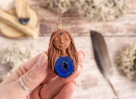 Vsaka Čarobnica je poimenovana po boginjah iz različnih obdobij, kultur in tradicij z vseh koncev sveta. Med izdelavo za vsako Čarobnico posebej povlečem orakelsko karto, ki nosi posebno sporočilo. Z vsako Čarobnico dobite torej še sporočilo, ki ga odkrijete šele, ko odprete paketek.
