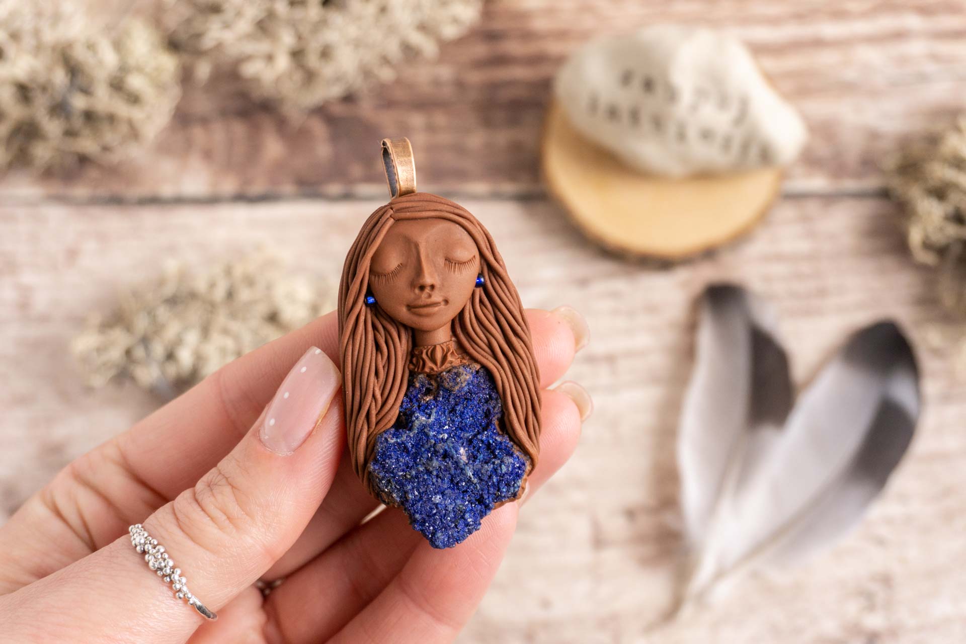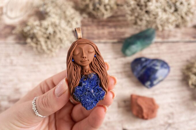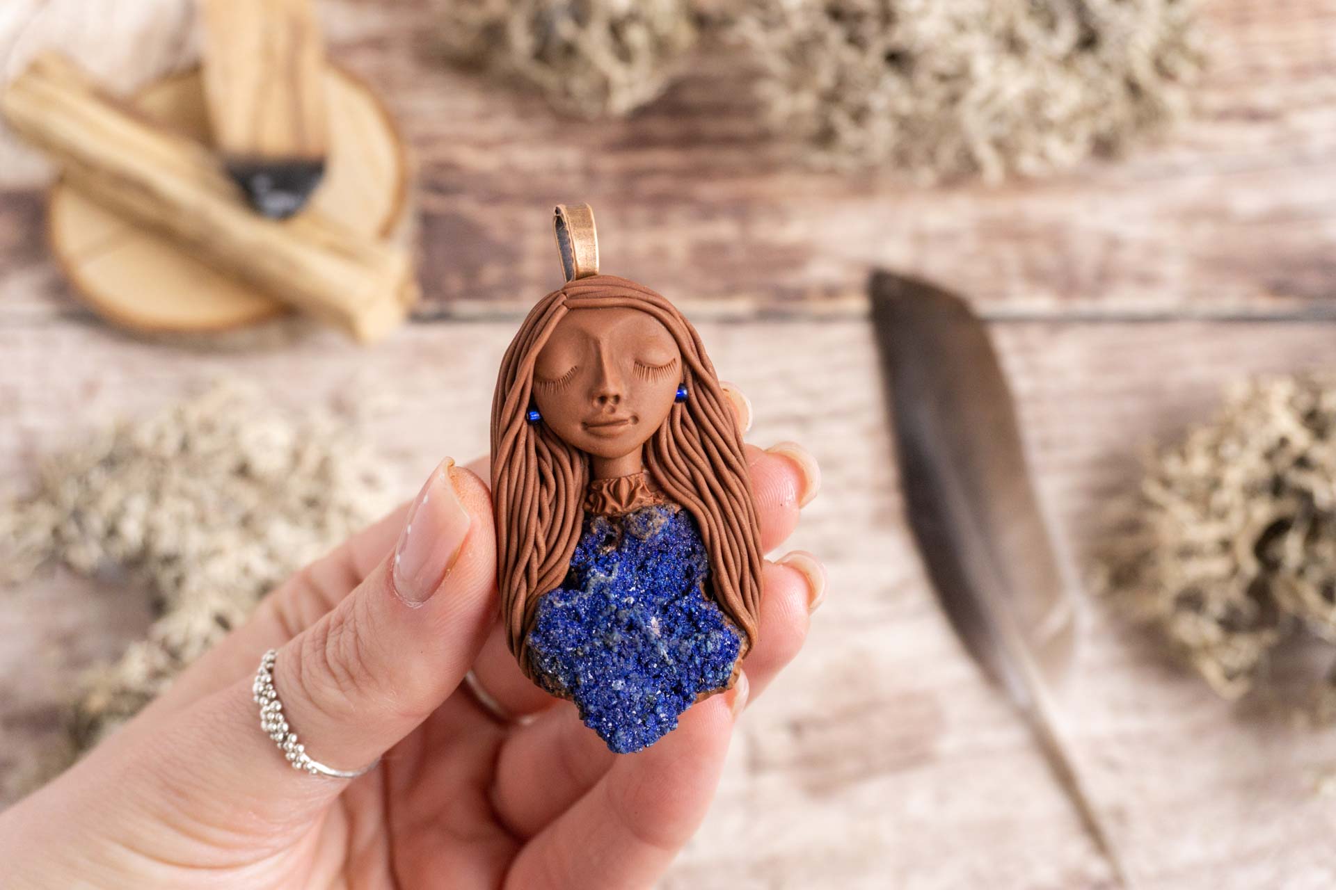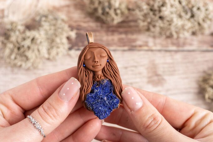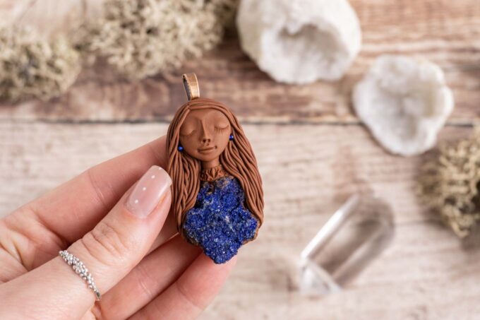 Čarobnica je izdelana iz polimerne gline. Vsak kos je unikaten in na voljo samo en kos. Izdelek lahko minimalno odstopa v barvnih niansah in detajlih, vendar se trudim, da bo vaš izdelek v naravi identičen opisu in fotografiji.