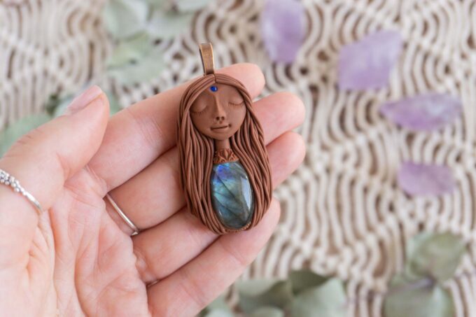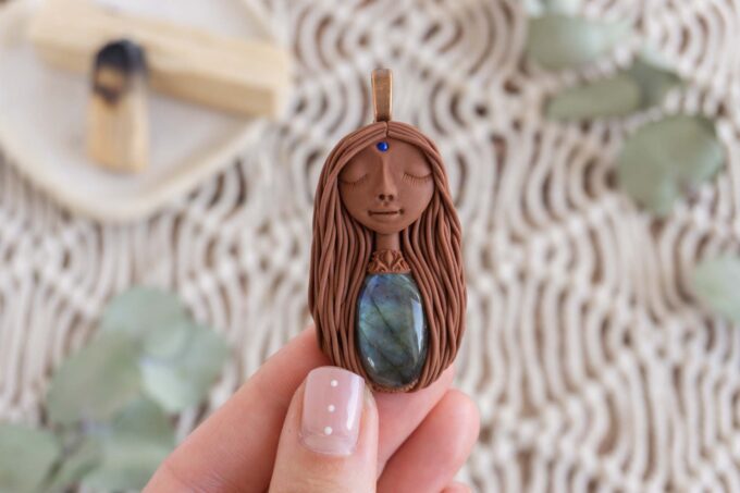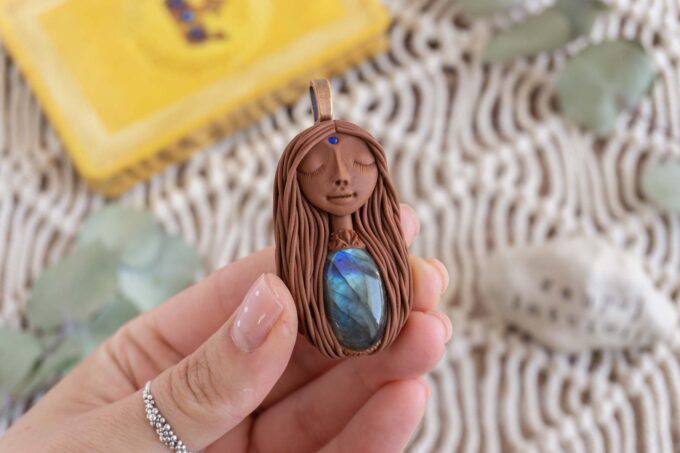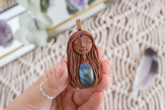 Čarobnica je izdelana iz polimerne gline. Vsak kos je unikaten in na voljo samo en kos. Izdelek lahko minimalno odstopa v barvnih niansah in detajlih, vendar se trudim, da bo vaš izdelek v naravi identičen opisu in fotografiji.