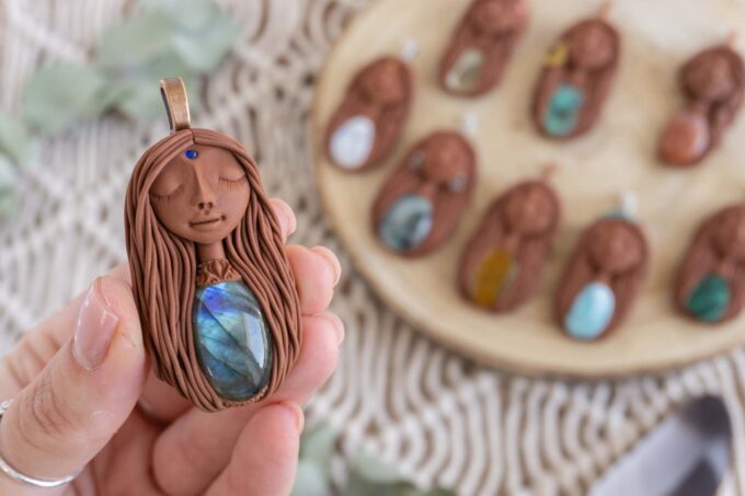 Vsaka Čarobnica je poimenovana po boginjah iz različnih obdobij, kultur in tradicij z vseh koncev sveta. Med izdelavo za vsako Čarobnico posebej povlečem orakelsko karto, ki nosi posebno sporočilo. Z vsako Čarobnico dobite torej še sporočilo, ki ga odkrijete šele, ko odprete paketek.