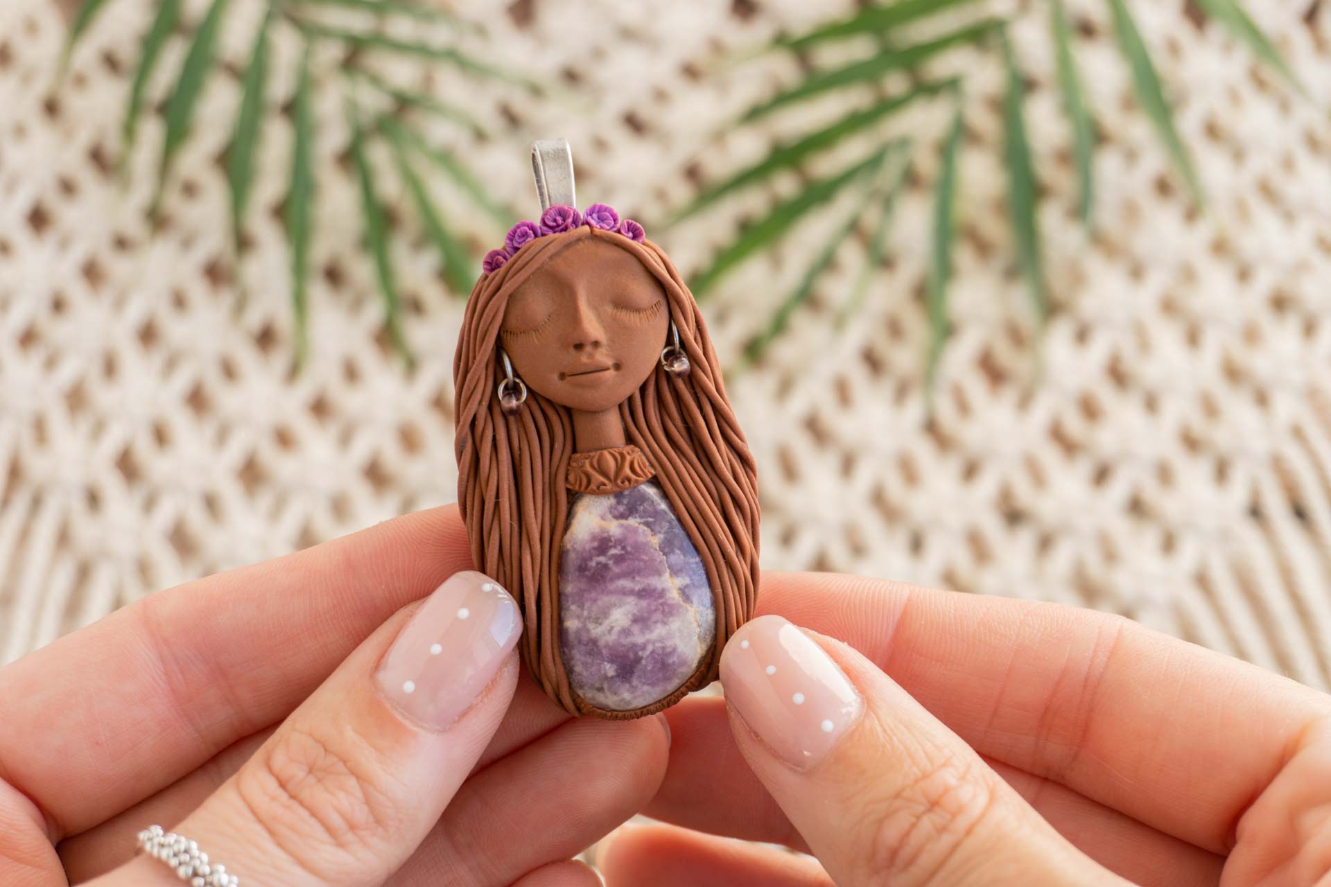 Čarobnica je izdelana iz polimerne gline. Vsak kos je unikaten in na voljo samo en kos. Izdelek lahko minimalno odstopa v barvnih niansah in detajlih, vendar se trudim, da bo vaš izdelek v naravi identičen opisu in fotografiji.