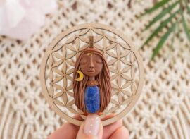 Vsaka Čarobnica je poimenovana po boginjah iz različnih obdobij, kultur in tradicij z vseh koncev sveta. Med izdelavo za vsako Čarobnico posebej povlečem orakelsko karto, ki nosi posebno sporočilo. Z vsako Čarobnico dobite torej še sporočilo, ki ga odkrijete šele, ko odprete paketek.