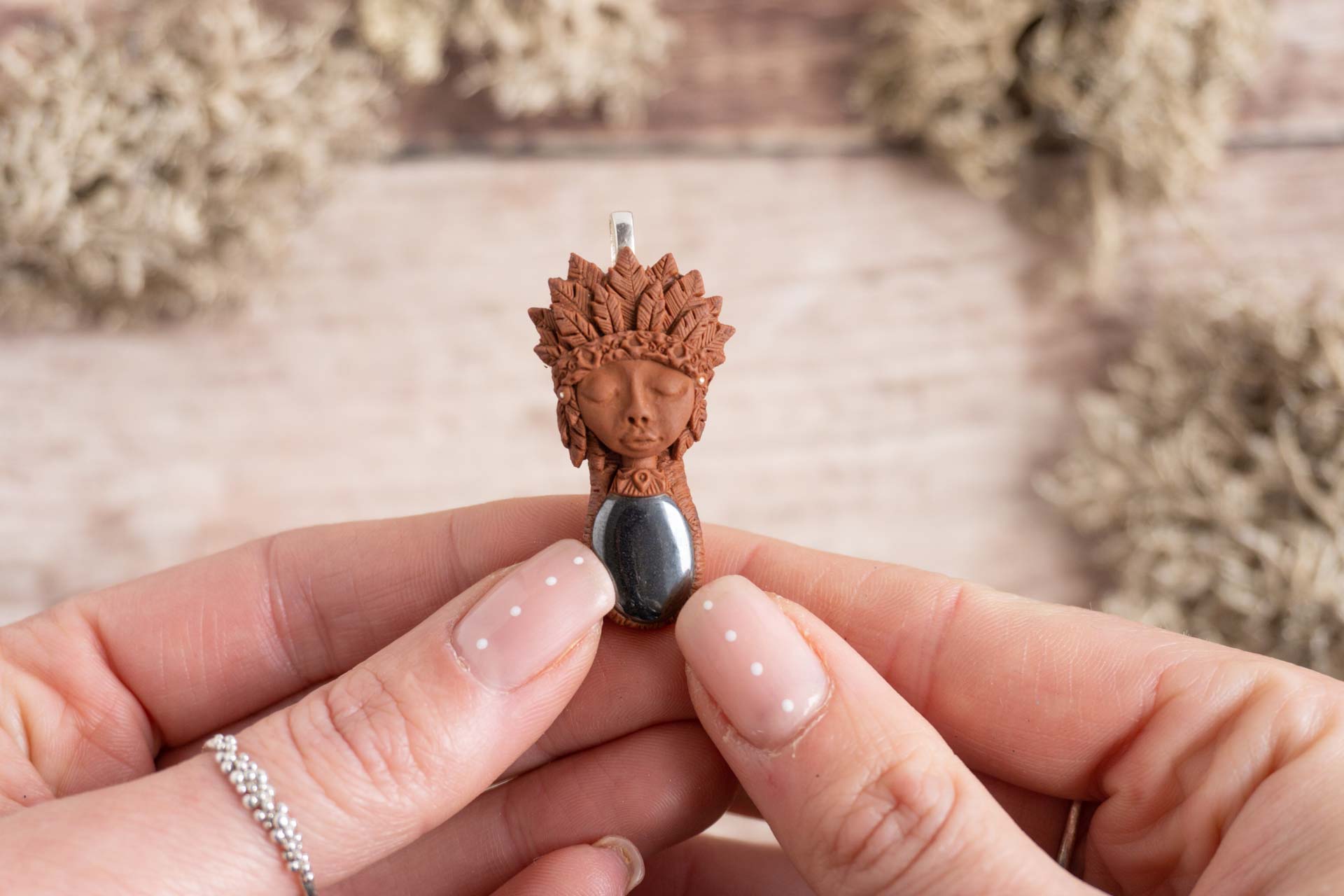 Čarobnik je izdelan iz polimerne gline. Vsak kos je unikaten in na voljo samo en kos. Izdelek lahko minimalno odstopa v barvnih niansah in detajlih, vendar se trudim, da bo vaš izdelek v naravi identičen opisu in fotografiji.