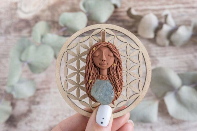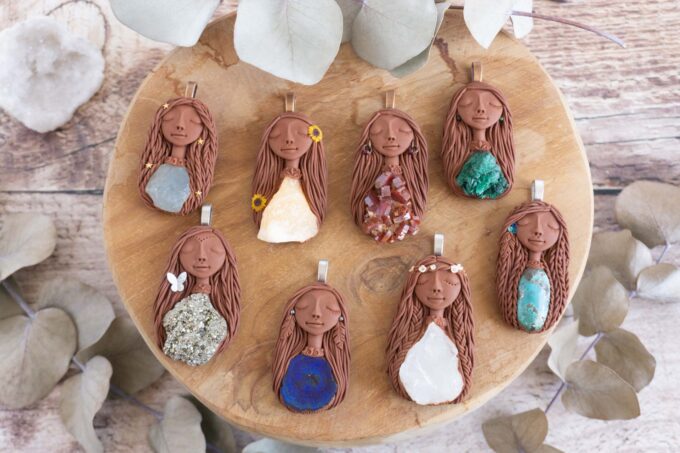 Vsaka Čarobnica je poimenovana po boginjah iz različnih obdobij, kultur in tradicij z vseh koncev sveta. Med izdelavo za vsako Čarobnico posebej povlečem orakelsko karto, ki nosi posebno sporočilo. Z vsako Čarobnico dobite torej še sporočilo, ki ga odkrijete šele, ko odprete paketek.