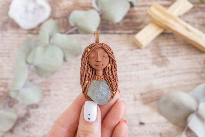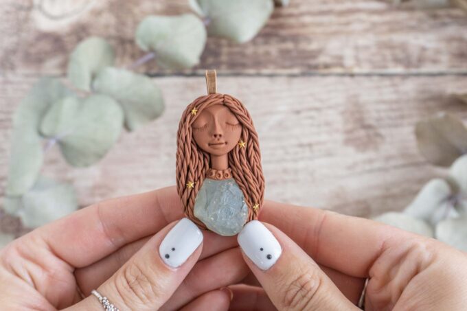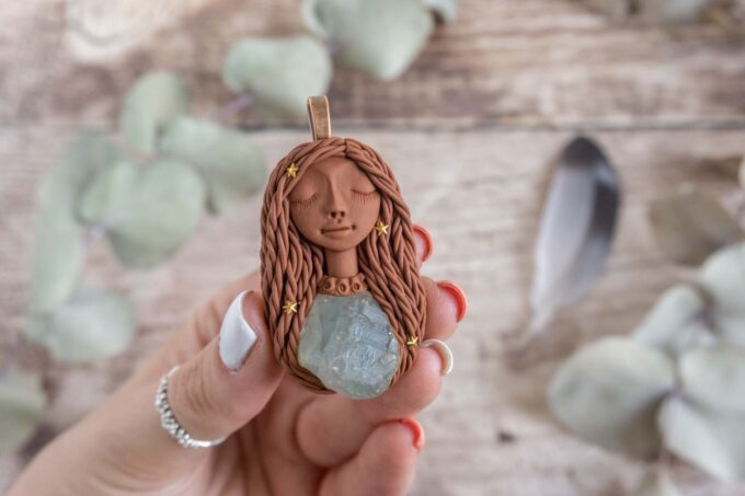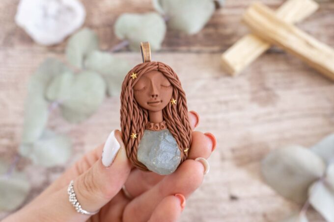 Čarobnica je izdelana iz polimerne gline. Vsak kos je unikaten in na voljo samo en kos. Izdelek lahko minimalno odstopa v barvnih niansah in detajlih, vendar se trudim, da bo vaš izdelek v naravi identičen opisu in fotografiji.