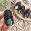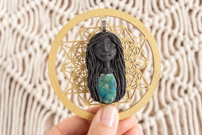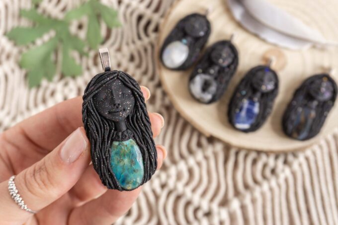 Vsaka Čarobnica je poimenovana po boginjah iz različnih obdobij, kultur in tradicij z vseh koncev sveta. Med izdelavo za vsako Čarobnico posebej povlečem orakelsko karto, ki nosi posebno sporočilo. Z vsako Čarobnico dobite torej še sporočilo, ki ga odkrijete šele, ko odprete paketek.