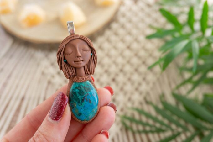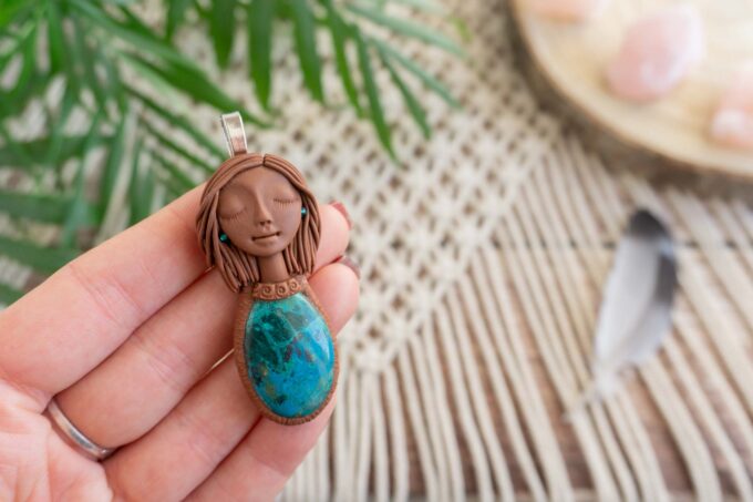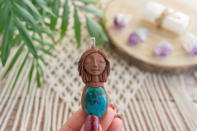 Čarobnica je izdelana iz polimerne gline. Vsak kos je unikaten in na voljo samo en kos. Izdelek lahko minimalno odstopa v barvnih niansah in detajlih, vendar se trudim, da bo vaš izdelek v naravi identičen opisu in fotografiji.