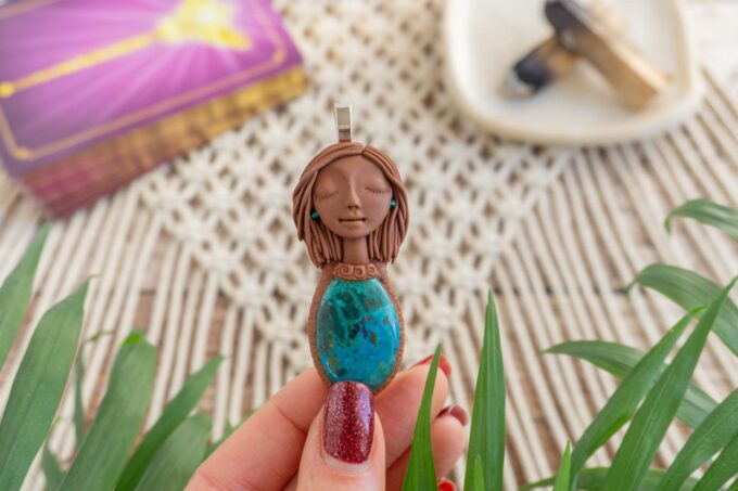 Vsaka Čarobnica je poimenovana po boginjah iz različnih obdobij, kultur in tradicij z vseh koncev sveta. Med izdelavo za vsako Čarobnico posebej povlečem orakelsko karto, ki nosi posebno sporočilo. Z vsako Čarobnico dobite torej še sporočilo, ki ga odkrijete šele, ko odprete paketek.