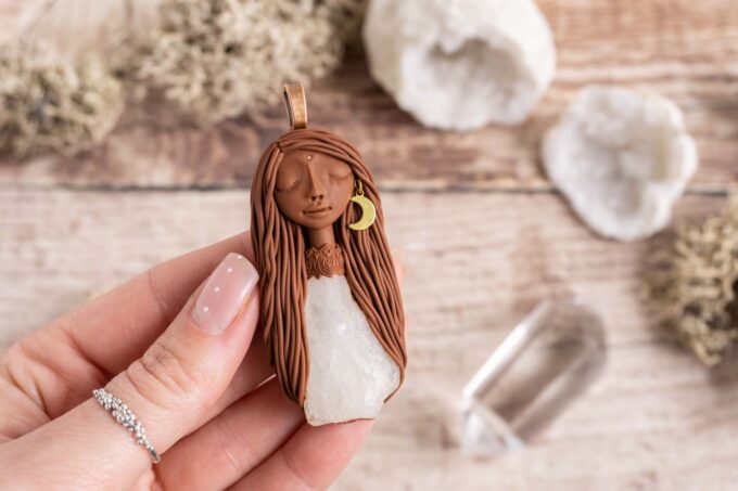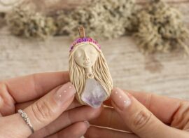Vsaka Čarobnica je poimenovana po boginjah iz različnih obdobij, kultur in tradicij z vseh koncev sveta. Med izdelavo za vsako Čarobnico posebej povlečem orakelsko karto, ki nosi posebno sporočilo. Z vsako Čarobnico dobite torej še sporočilo, ki ga odkrijete šele, ko odprete paketek.