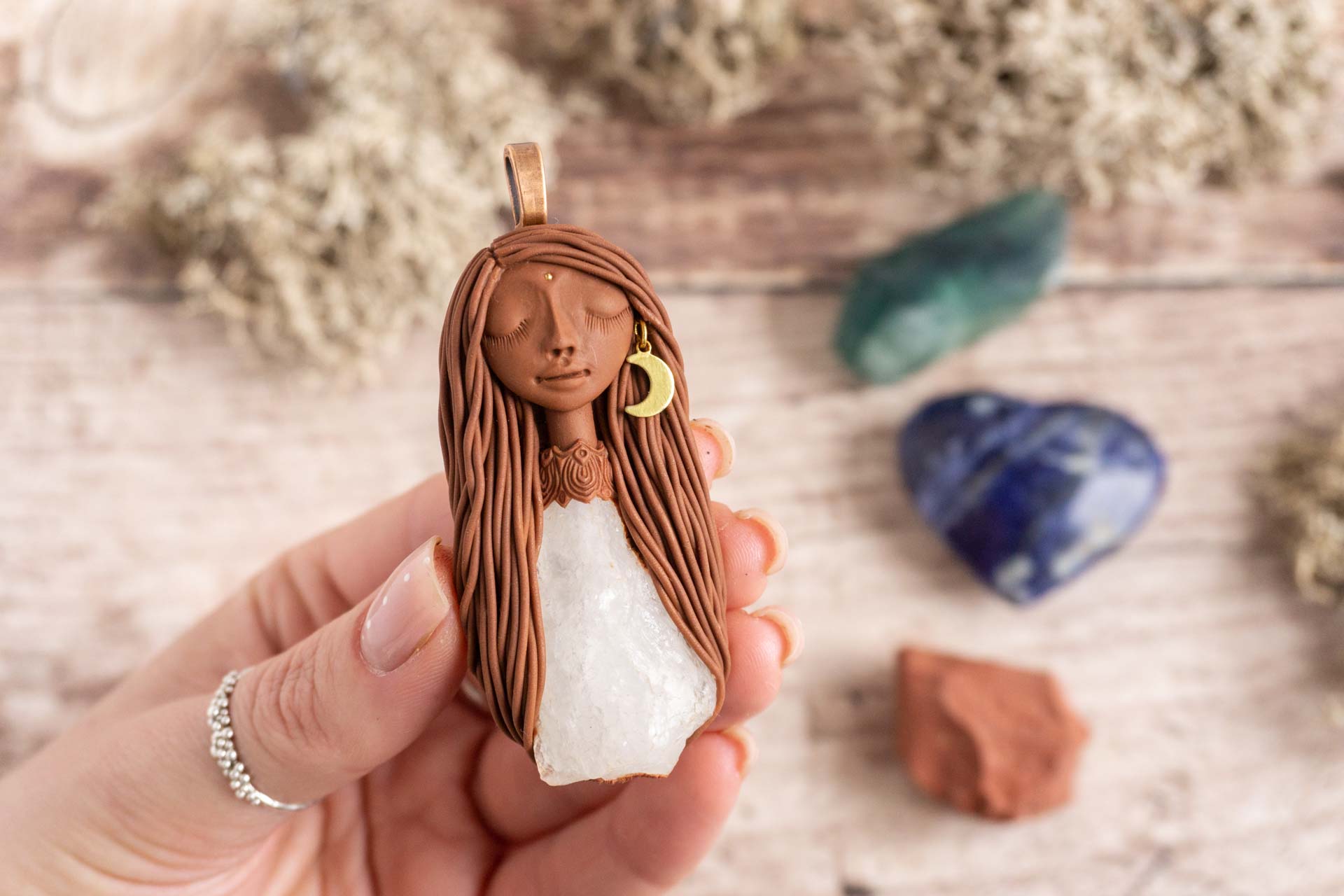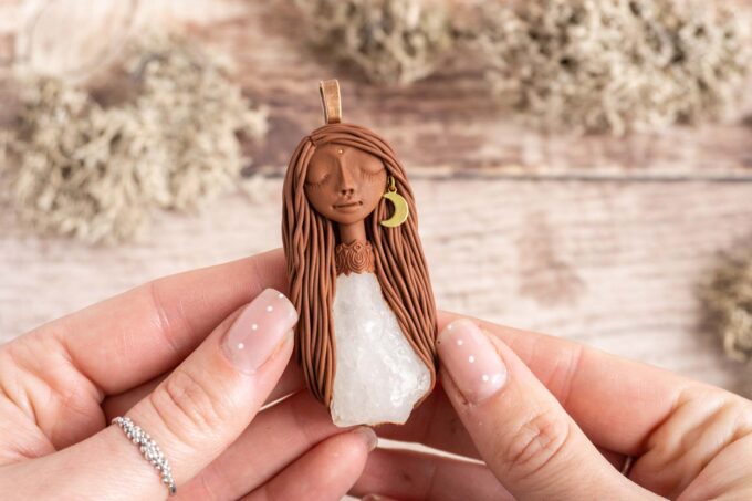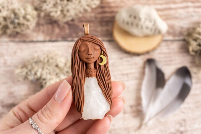 Čarobnica je izdelana iz polimerne gline. Vsak kos je unikaten in na voljo samo en kos. Izdelek lahko minimalno odstopa v barvnih niansah in detajlih, vendar se trudim, da bo vaš izdelek v naravi identičen opisu in fotografiji.