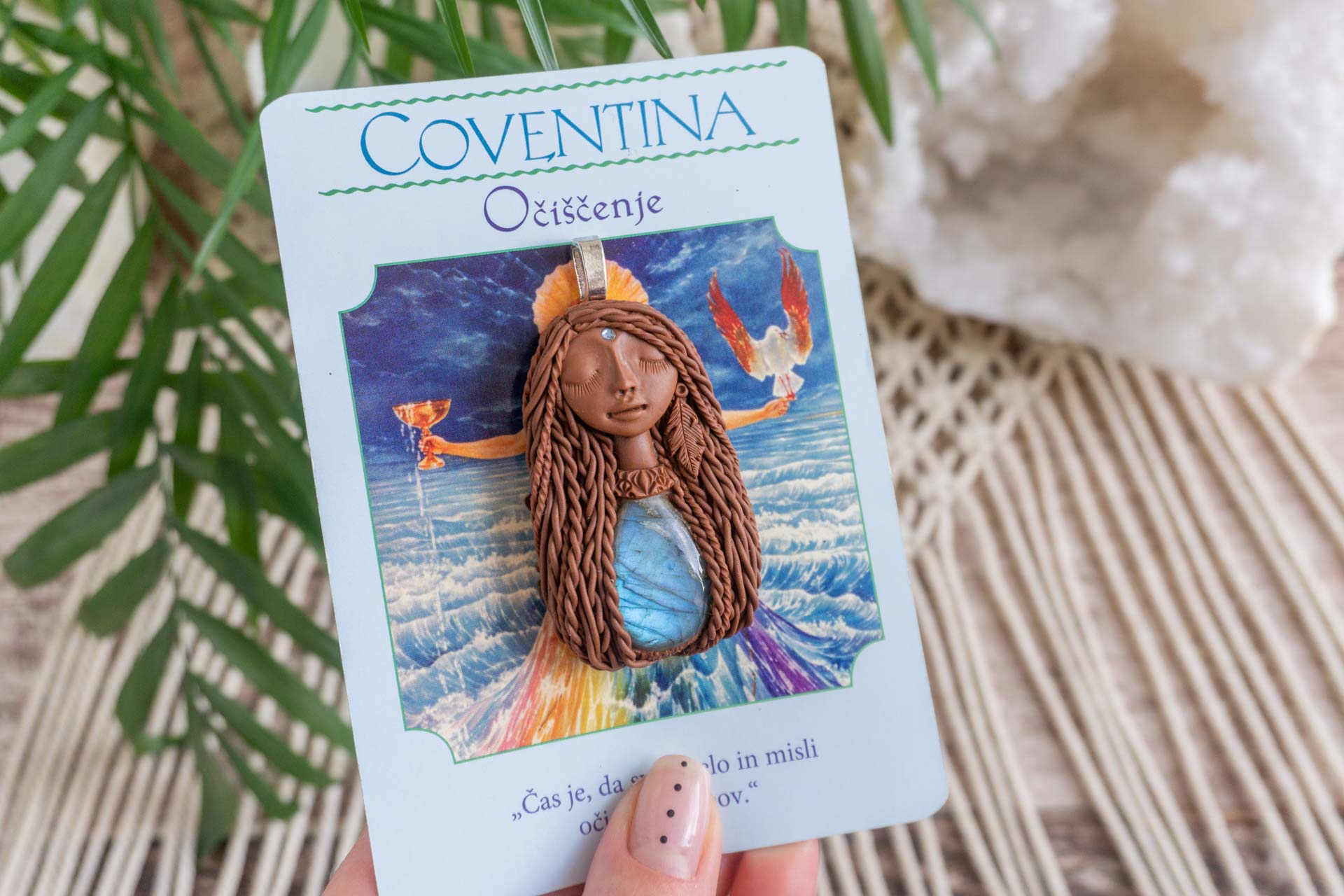 Je mogočna keltska boginja voda – morij, jezer, potokov, ribnikov in rek. Coventina ščiti vode in vse vodne prebivalce in z veseljem vam bo podarila božansko pooblastilo, da postanete okoljevarstvenik, če jo boste prosili. Vodnjaki želja so bili narejeni njej v čast in še danes nadaljujemo tradicijo metanja kovancev v vodo, medtem ko si nekaj zaželimo. Coventina je tista, ki uresničuje te želje. Ker je naše telo v glavnem iz vode, nam pomaga pri očiščevanju našega fizičnega jaza. Spominja nas, da očiščevanje prav tako pomeni, da ohranjamo misli in govor polne pozitivnih besed, ki krepijo in ojačajo naše telo in življenje.